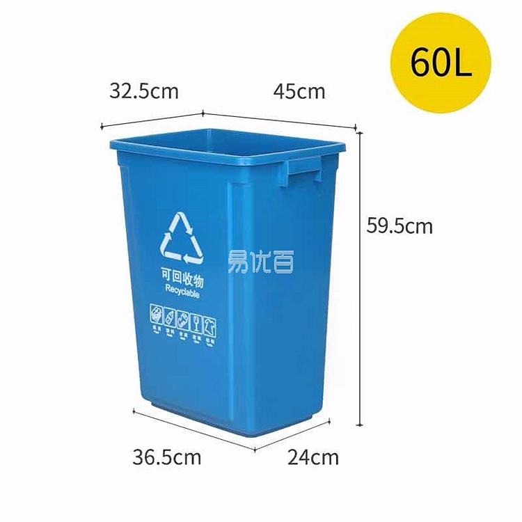 敏胤 摇盖分类垃圾桶 (新国标) (蓝色) 60L MYL-7760(可回收)