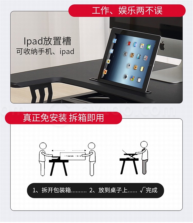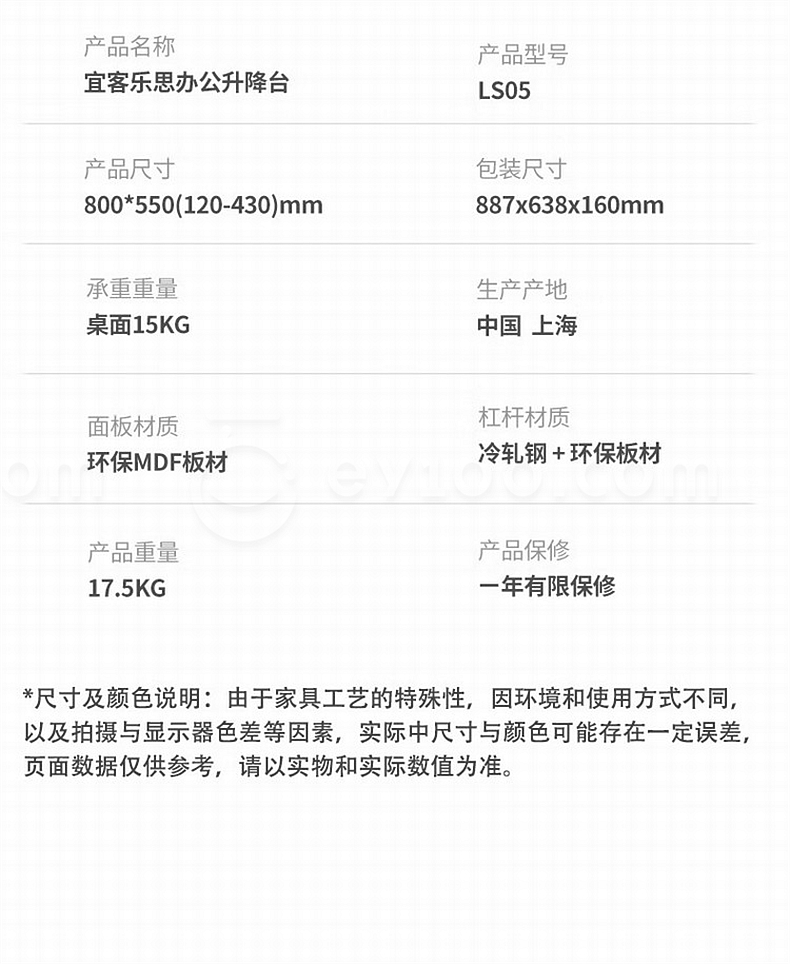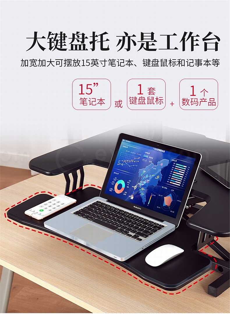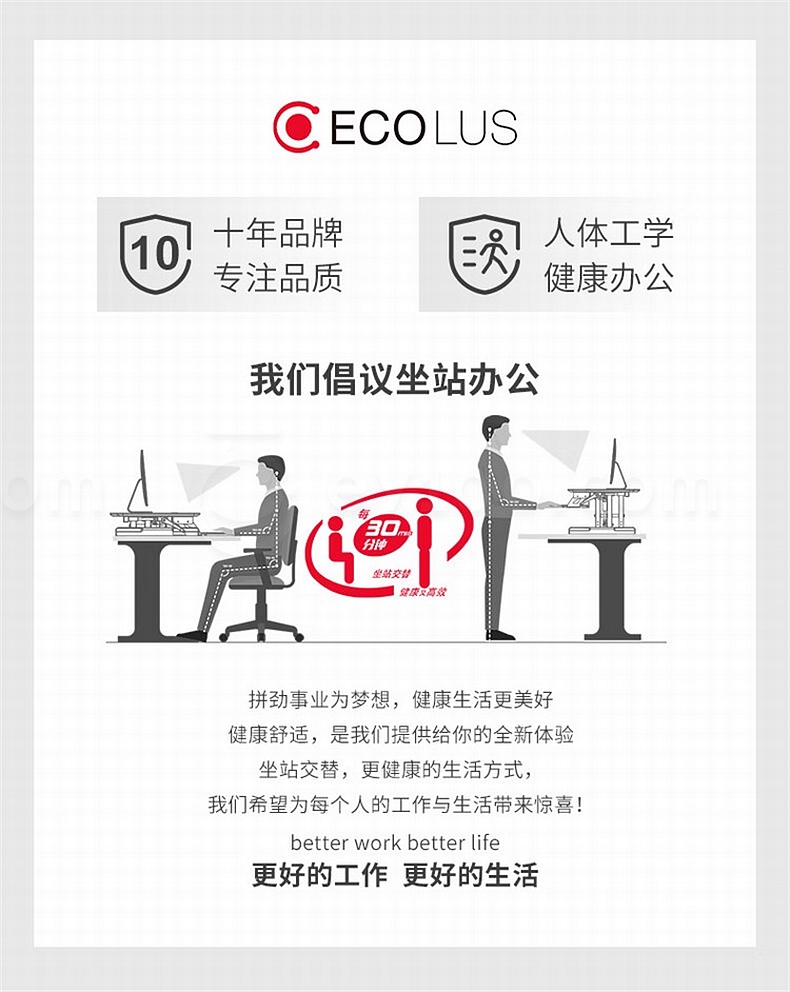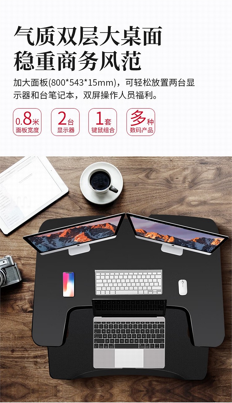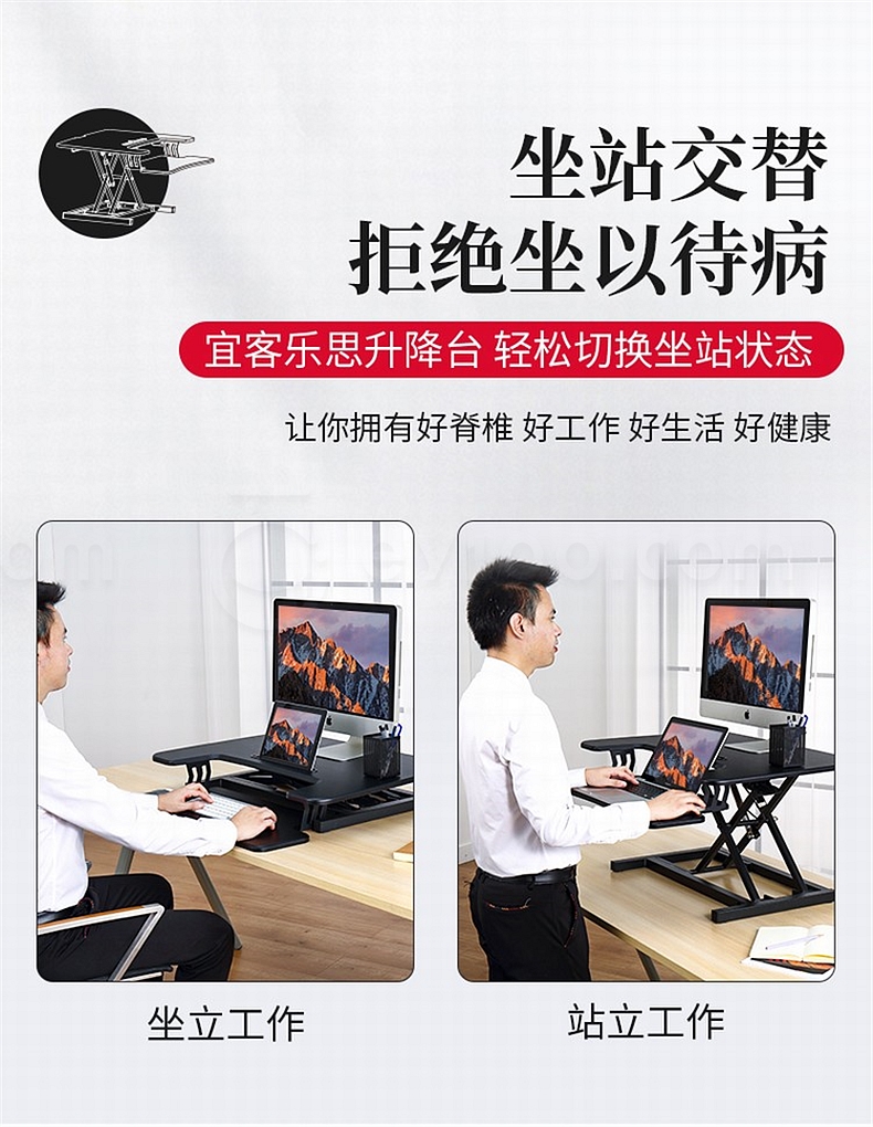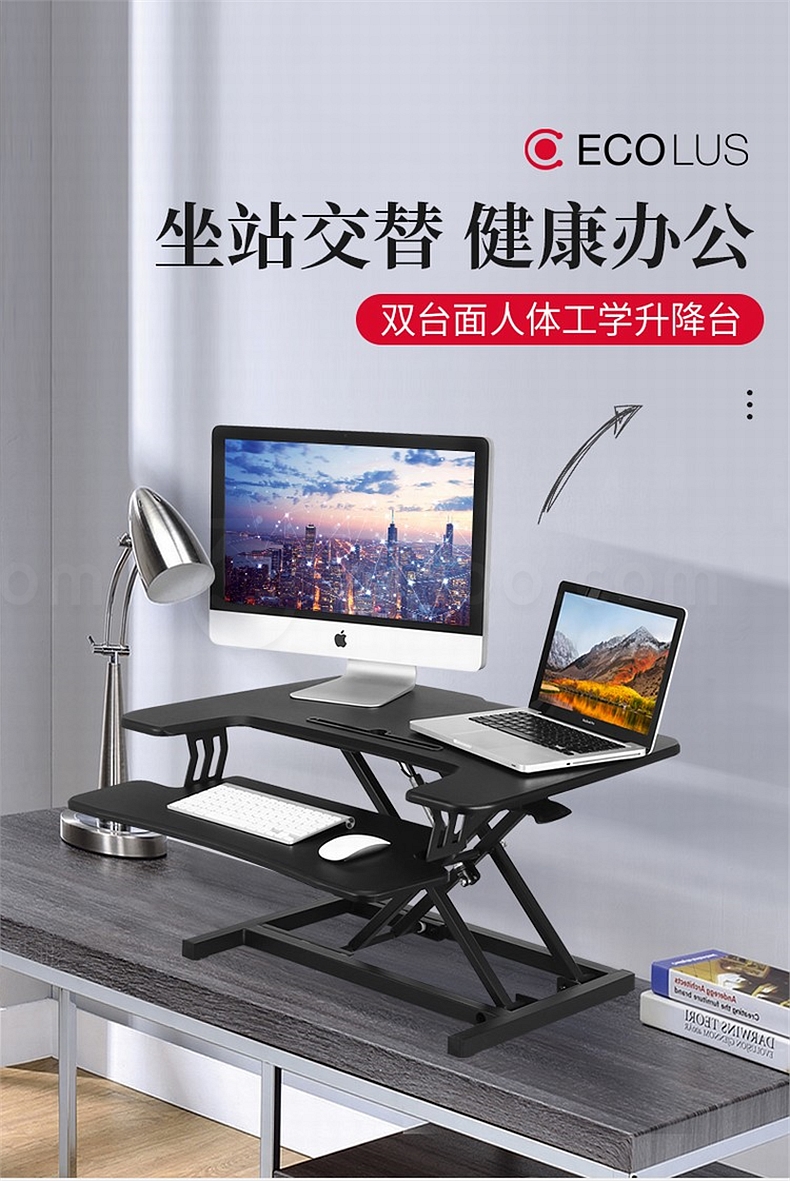 宜客乐思 ECOLUS电脑双台面升降台 无极升降800*550mm LS05BK