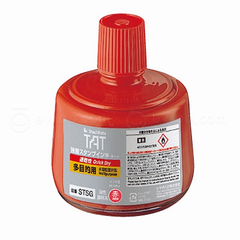 SHACHIHATA旗牌TAT工业系列速干印油(油墨)专用于所有无吸墨性纸张、金属(SUS.黄铜、铝板),塑料(聚乙烯、乙烯、乙烯基、聚丙烯、聚苯乙烯泡沫塑料、硬质PVC、ABS塑胶片、天然橡胶)、玻璃纸、铜版纸、光泽纸、陶瓷、皮革、鹿皮、棉布、木材、PCB线路板等吸收性和非吸收性材质