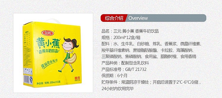 商品名称:三元黄小蕉香蕉牛奶饮品