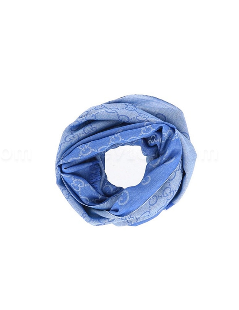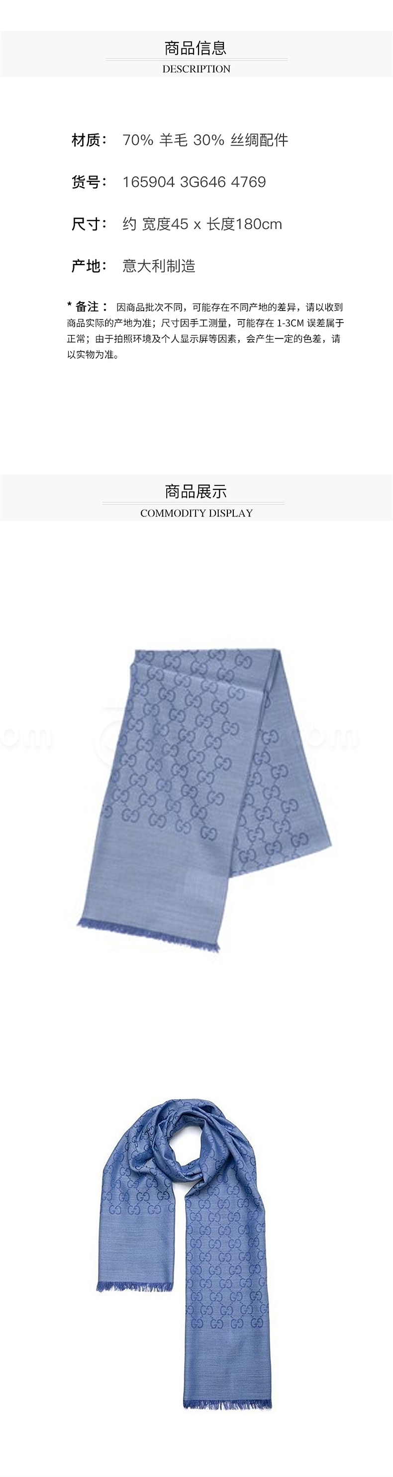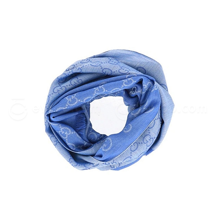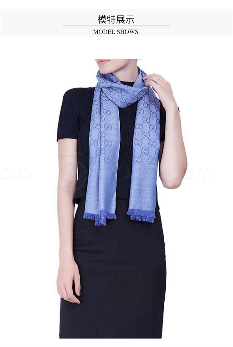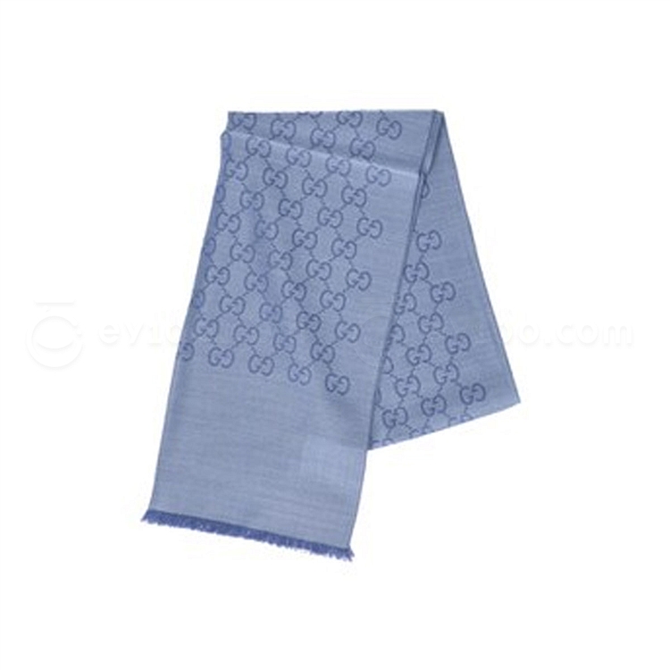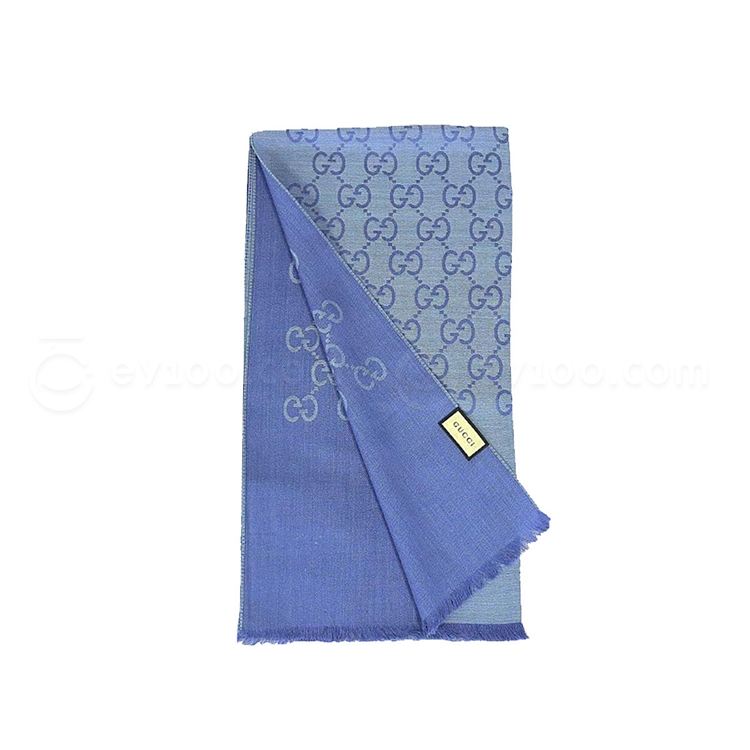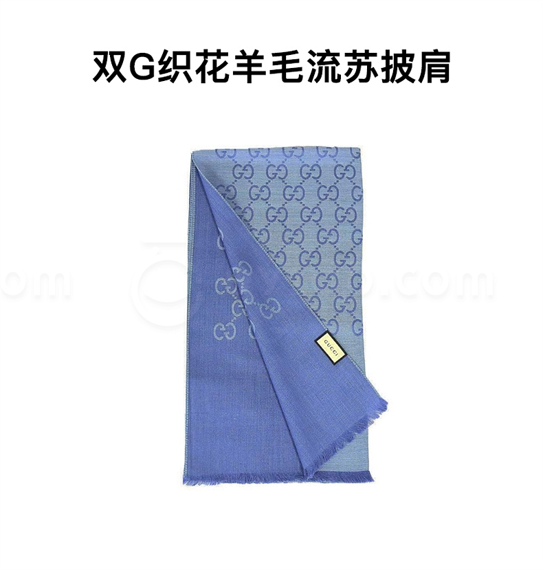 古驰 GUCCI 女士围巾 双G双面织花羊毛流苏披肩 (浅蓝色) 45*180 165904 3G646 4769