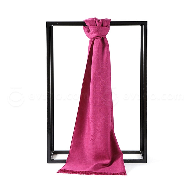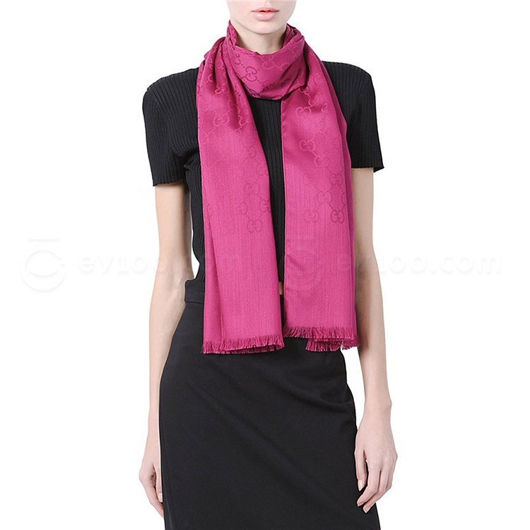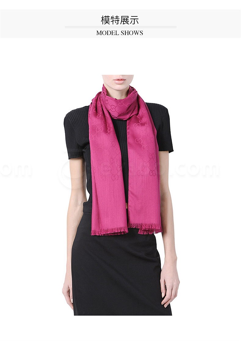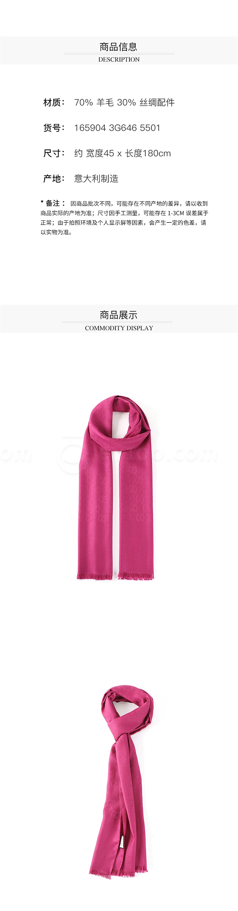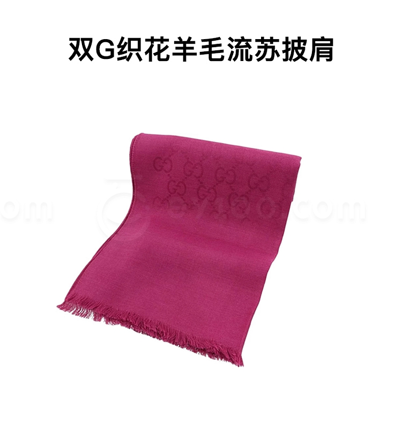 古驰 GUCCI 女士围巾 双G双面织花羊毛流苏披肩 (暗红色) 45*180 165904 3G646 5501