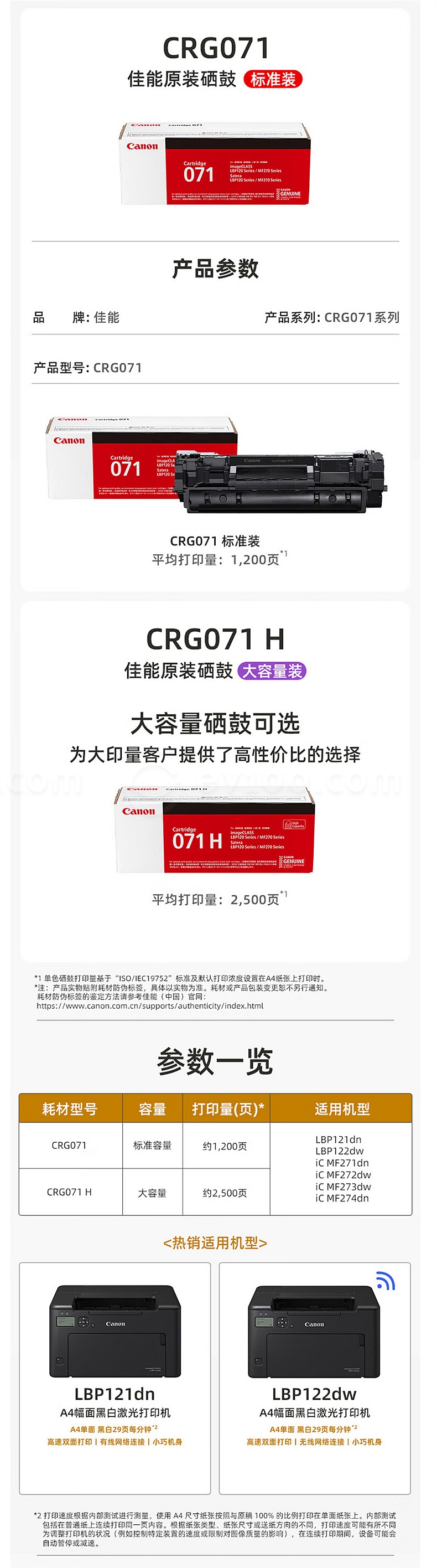 适用机型:LBP121dn/LBP122dw/iC MF271dn/iC MF272dw/iC MF273dw/iC MF274dn