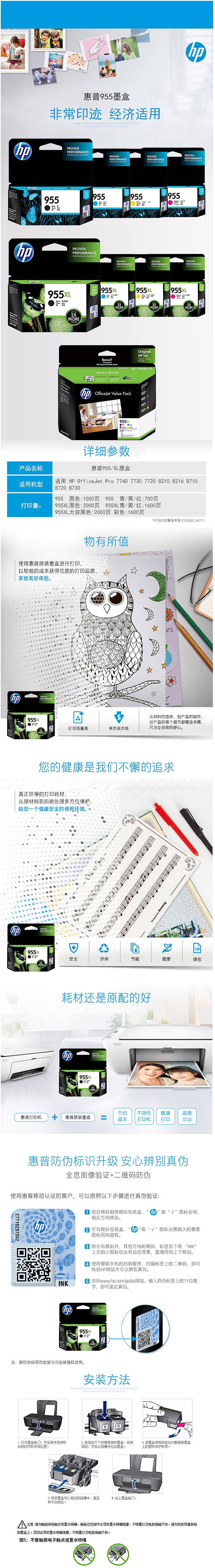 惠普 打印机墨盒 (黑) 955Xl L0S72AA