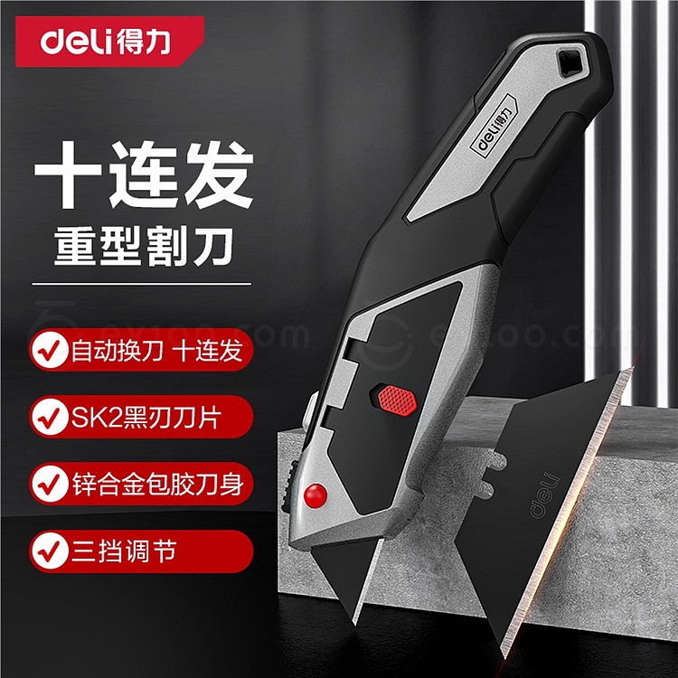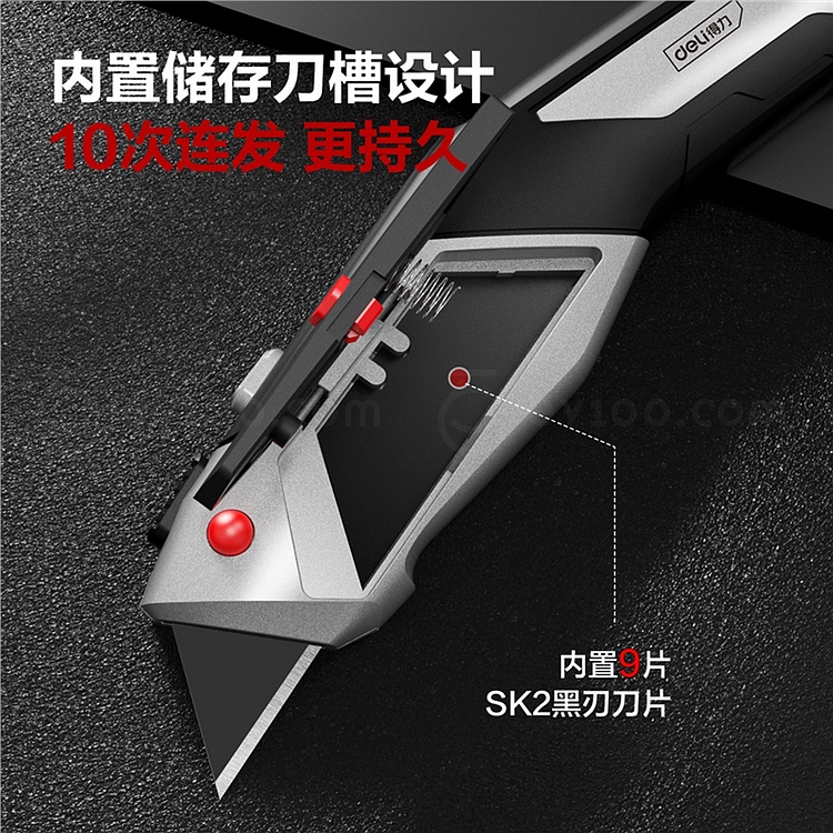 得力 SK2锌合金割刀十连发 (银) T型 DL4262