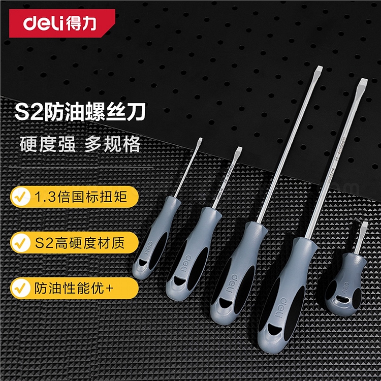 得力 PP防油一字螺丝刀S2 (灰) 3×75mm DL6430751