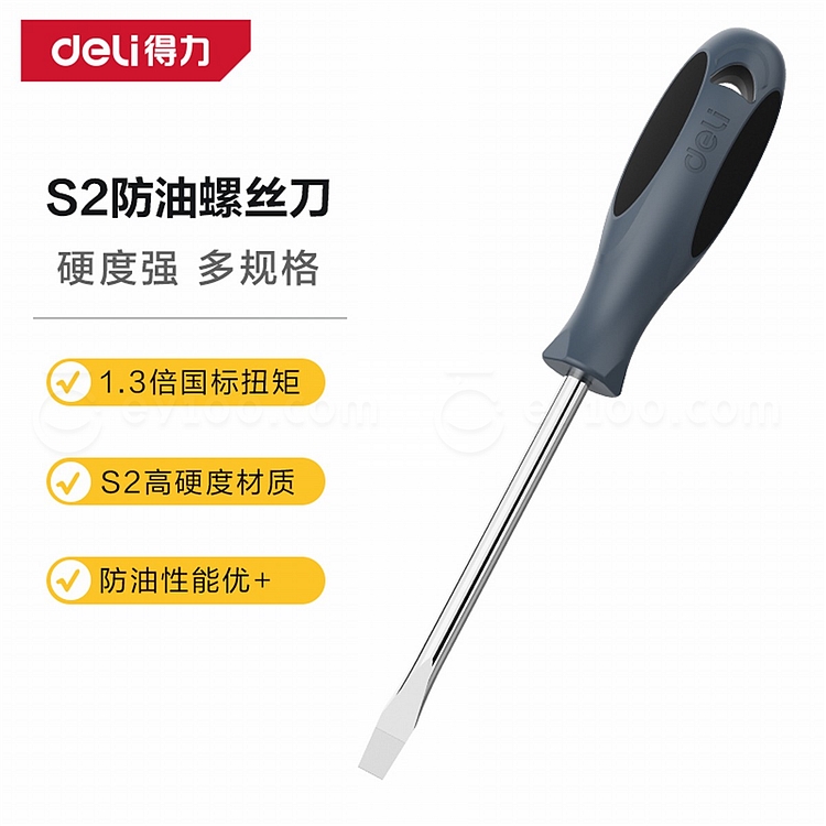 得力 PP防油一字螺丝刀S2 (灰) 6×100mm DL6461001