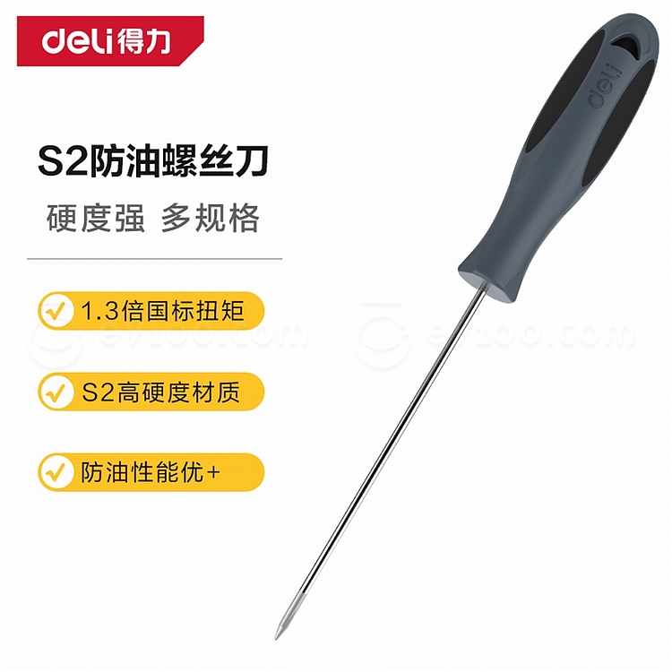 得力 PP防油十字螺丝刀S2 (灰) PH0×75mm DL643075