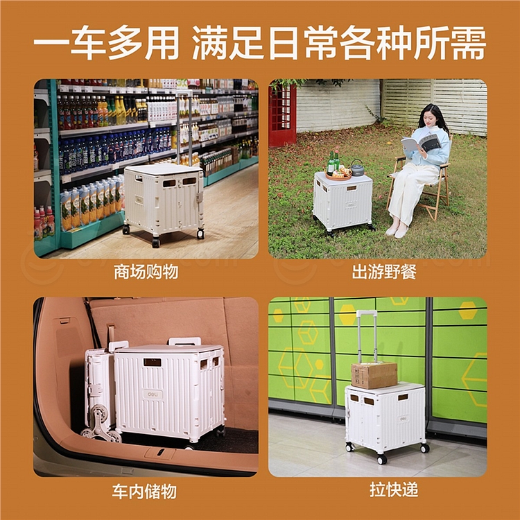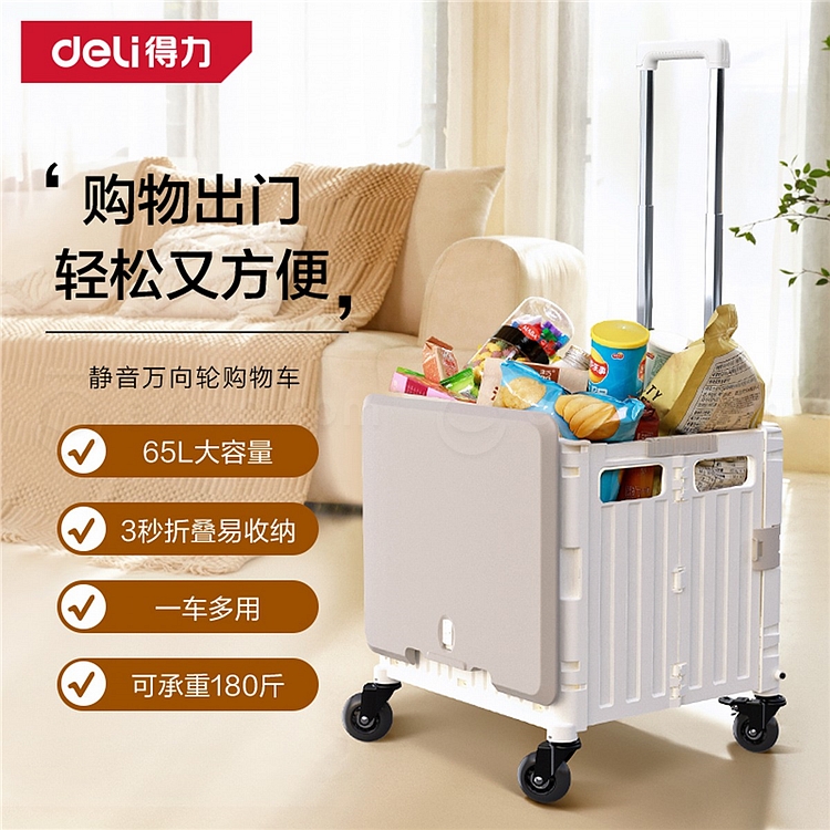 得力 折叠拉杆车4轮万向户外轮 (白) 35kg DL431004C