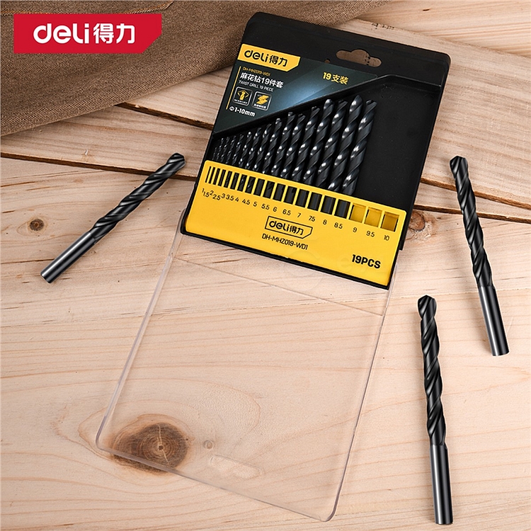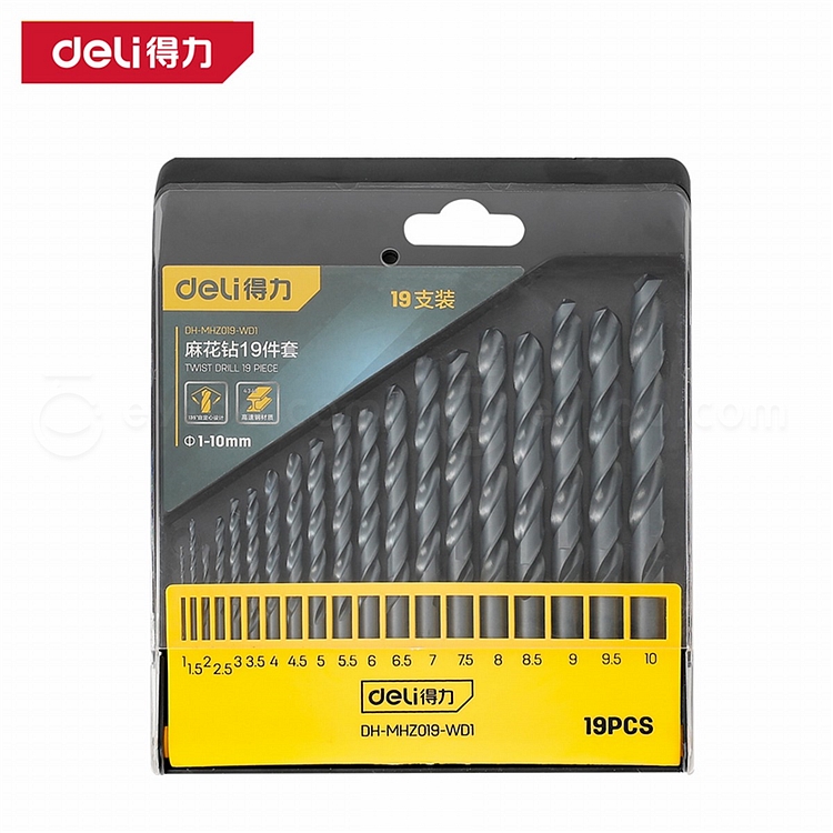得力 麻花钻套装 (黄) 19件套1-10mm DH-MHZ019-WD1