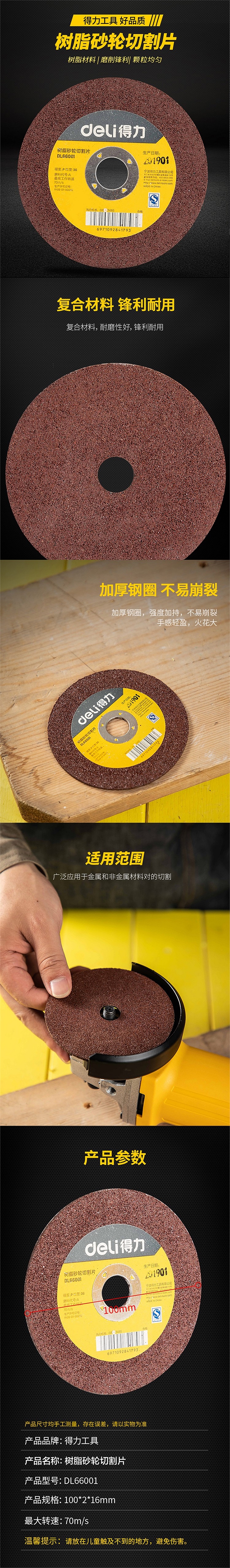 得力 树脂切割片 (黑) 100×2×16mm DL66001