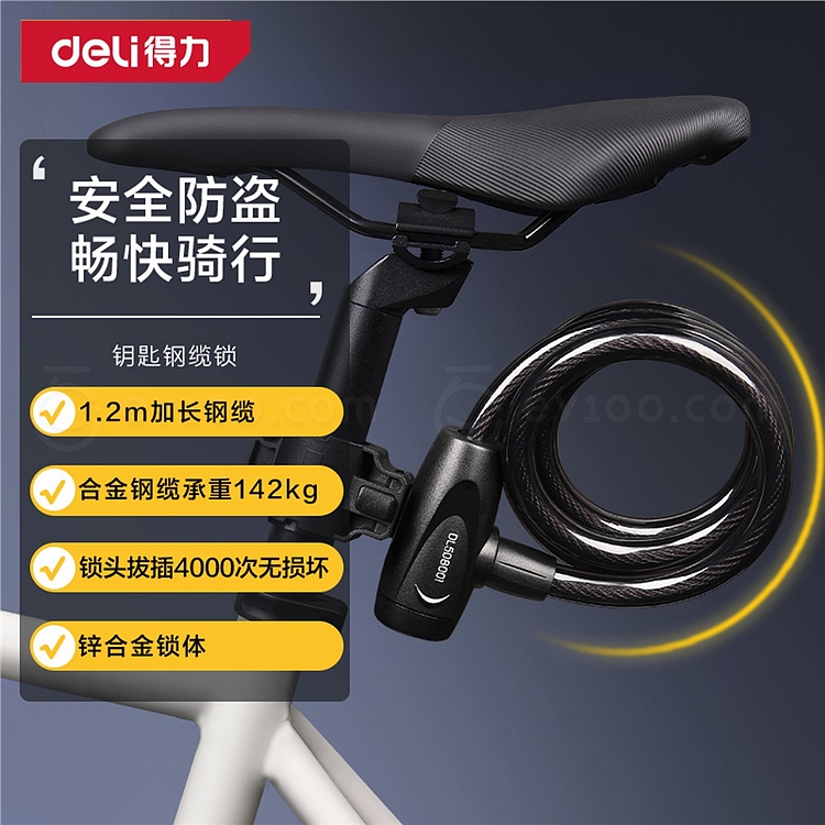 得力 密码钢缆锁 (黑) 12×1201mm DL508011