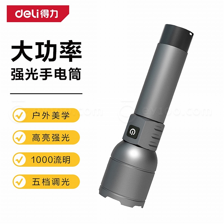 得力 户外调焦手电筒 (灰) 1000lm 3000mAh DL551026