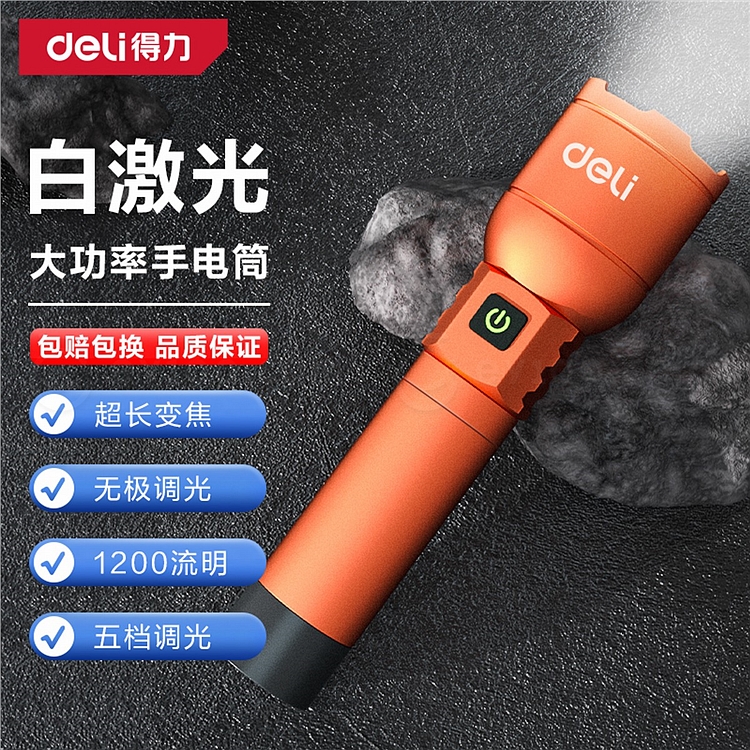 得力 户外白激光手电筒 (橙) 1200lm 3000mAh DL551029