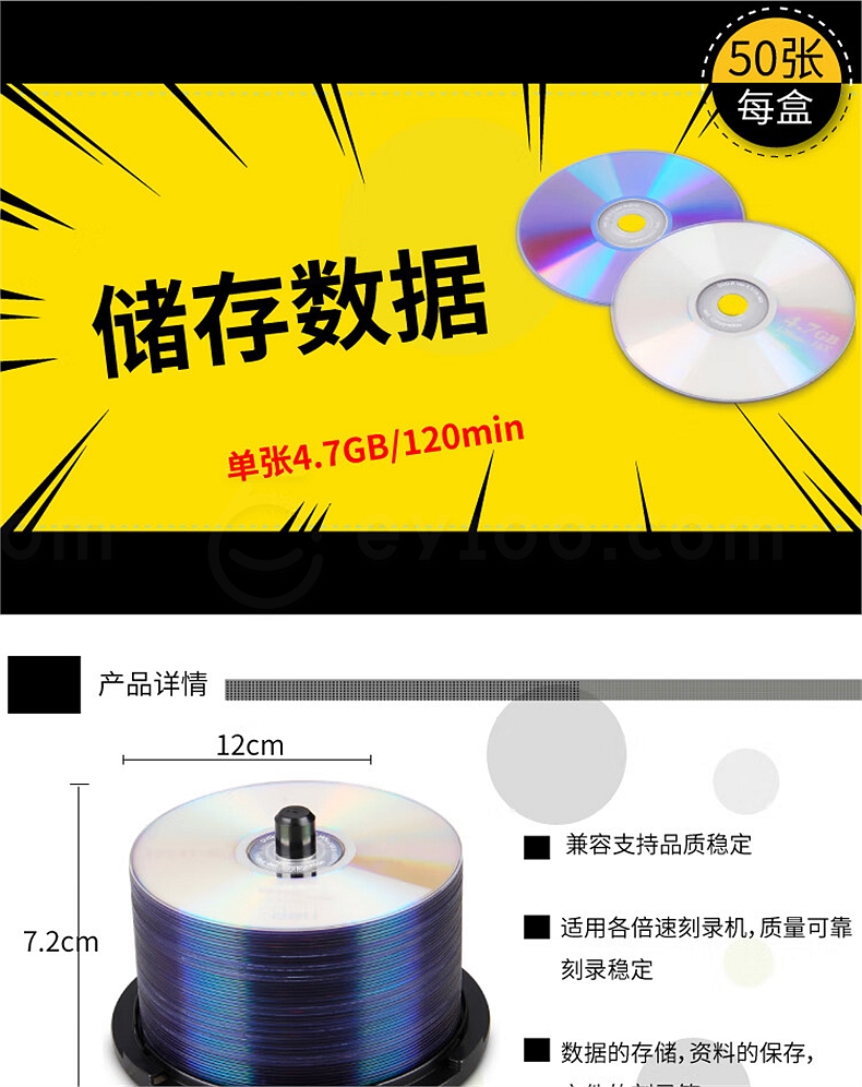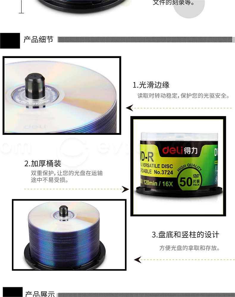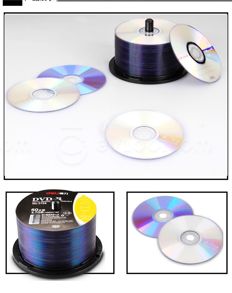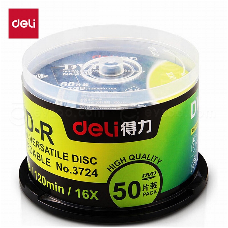 得力 DVD-R刻录盘 (雾银) 50片/筒 3724