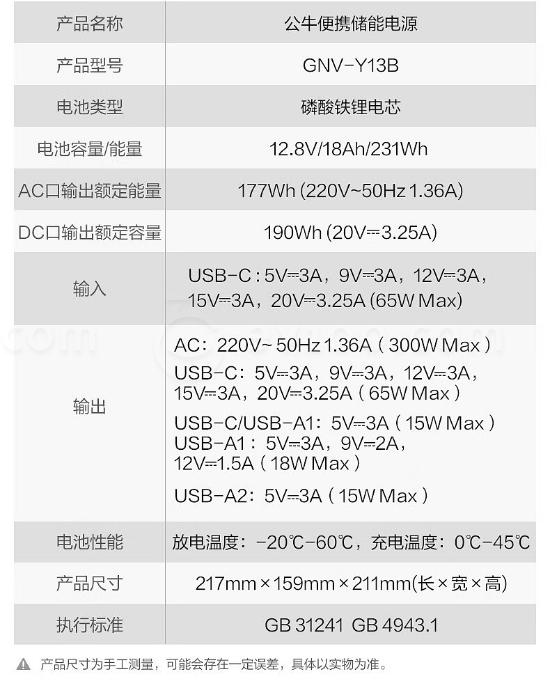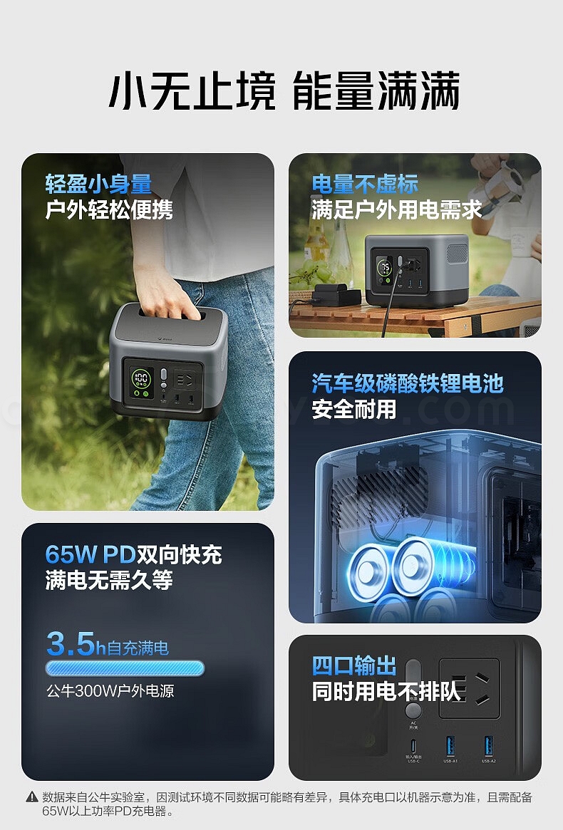 公牛 300w户外移动电源 露营车载应急充电 GNV-Y13B