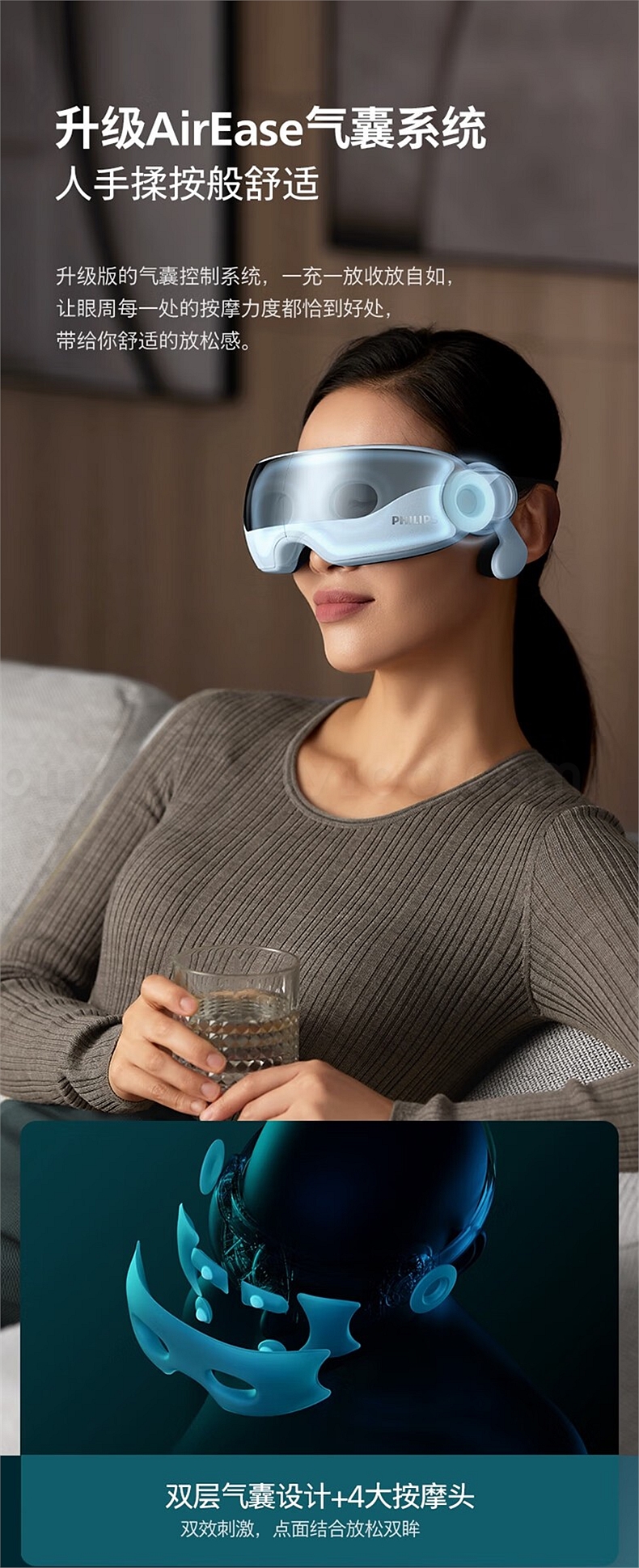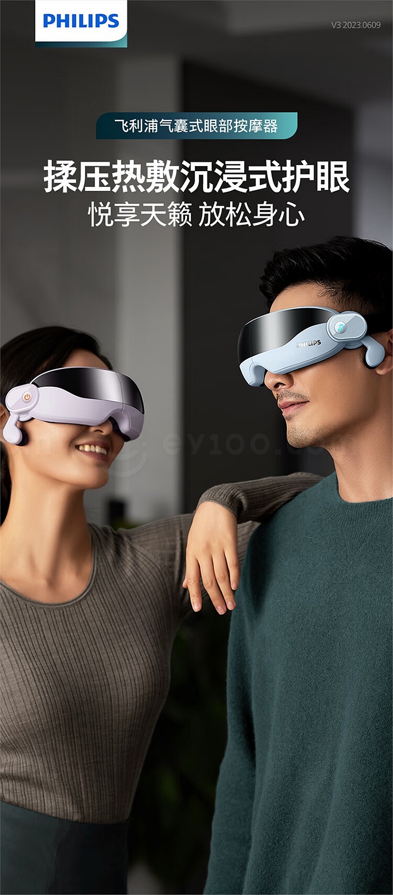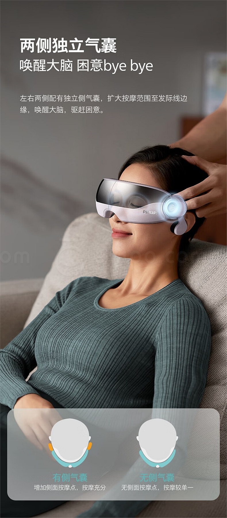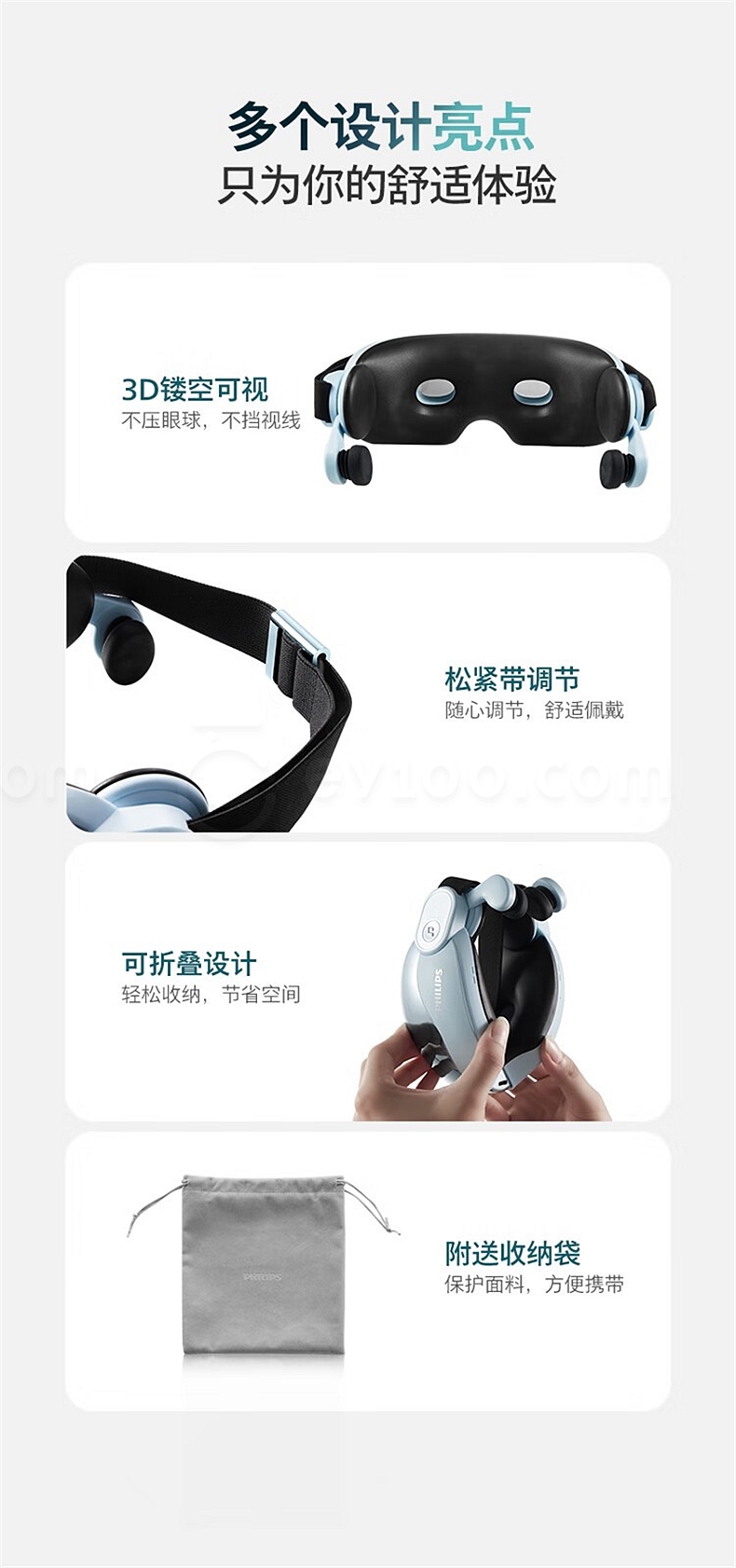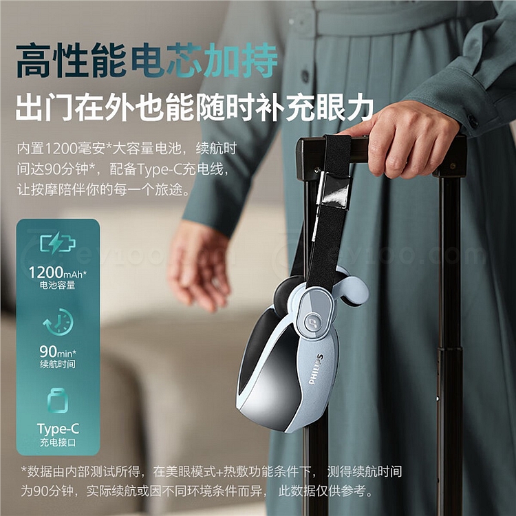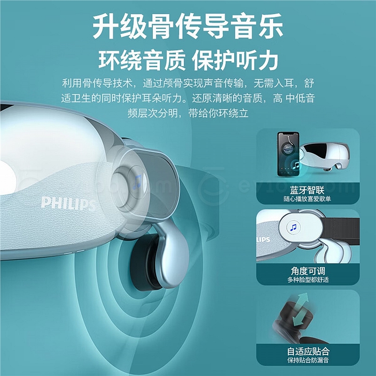 飞利浦 眼部按摩仪 (浅蓝) 揉压热敷护眼 7102E