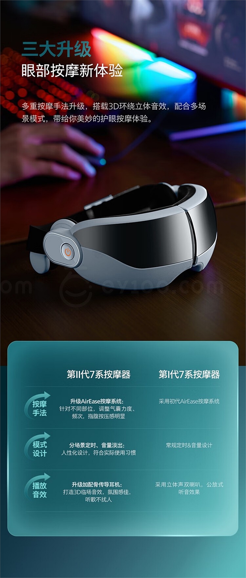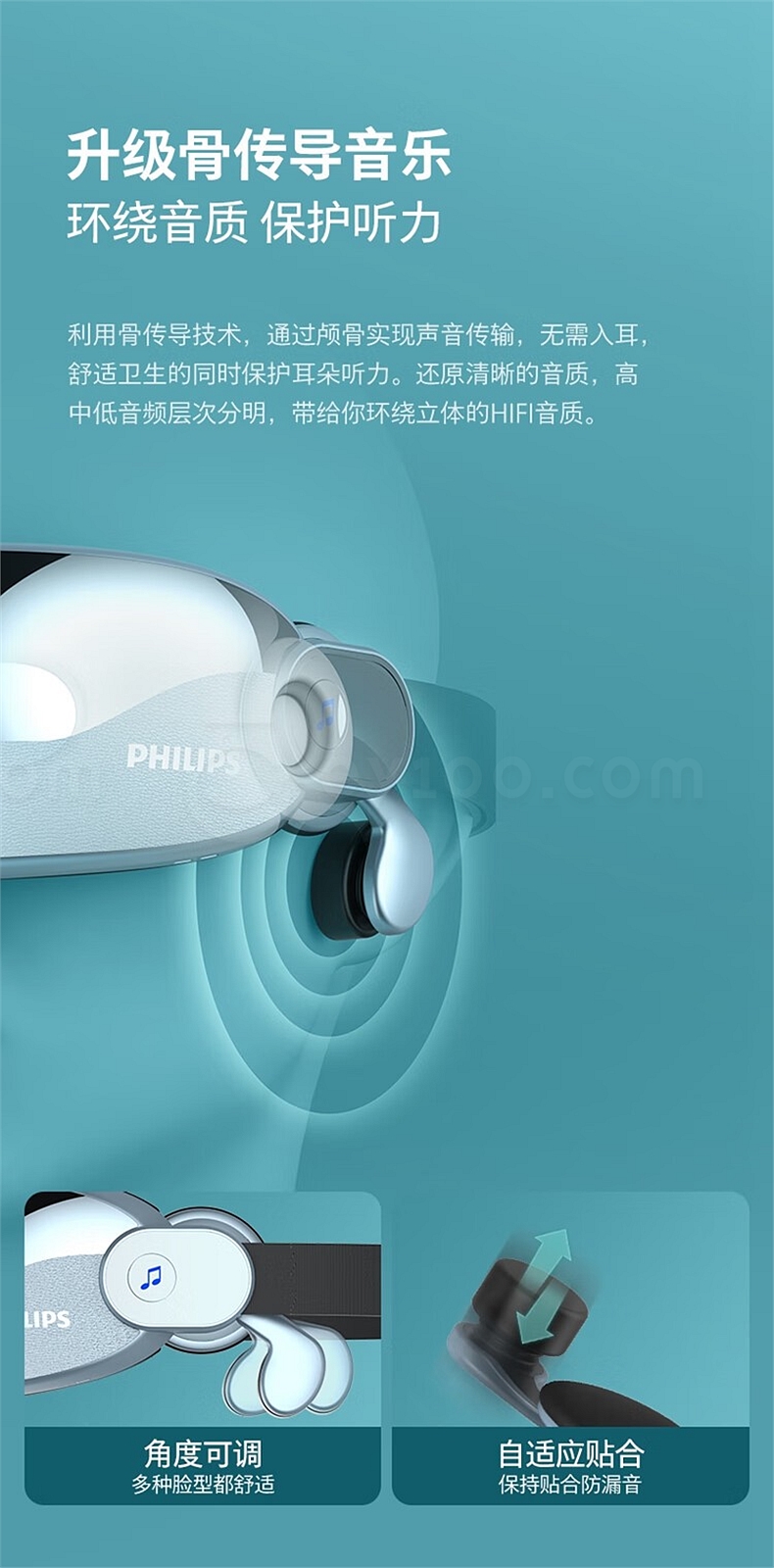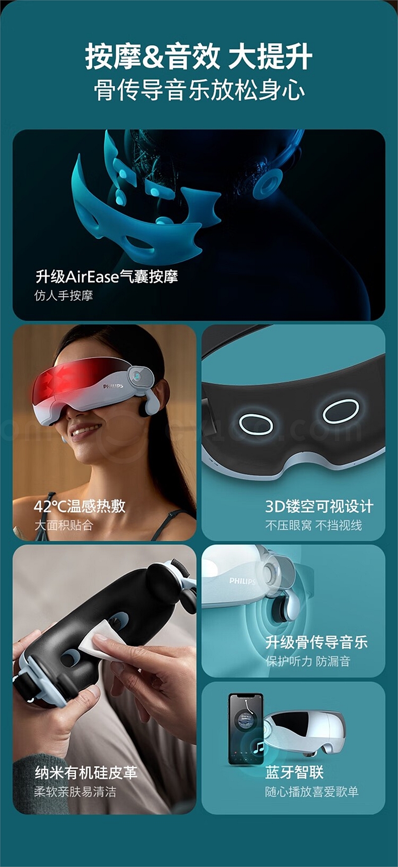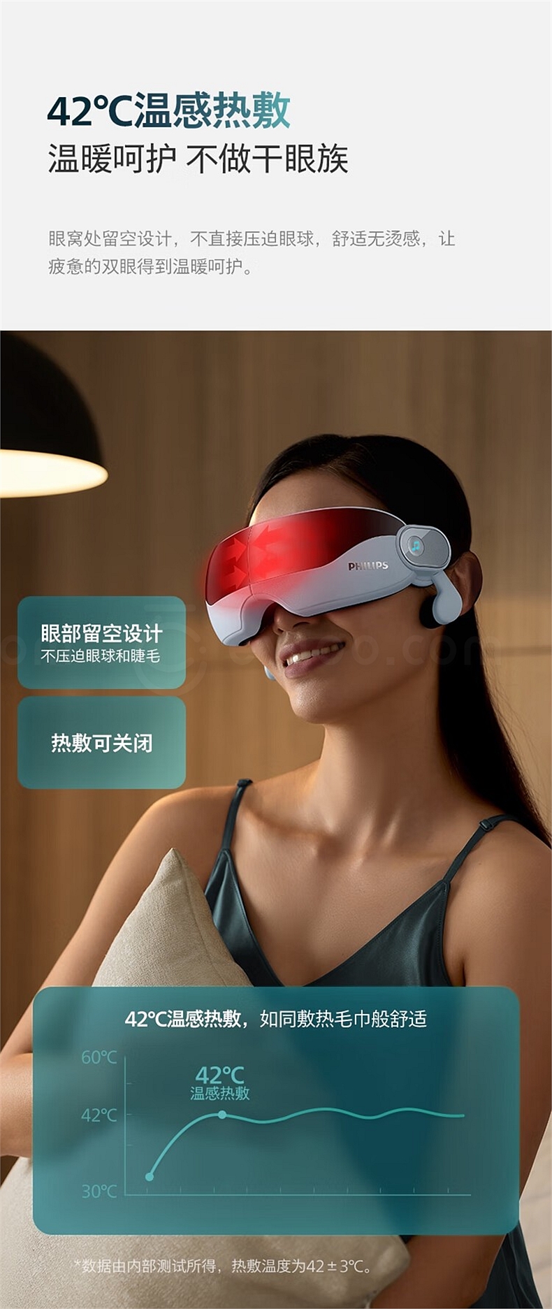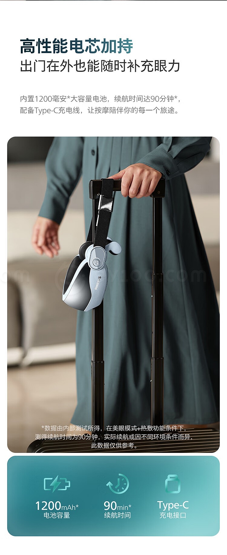 飞利浦 眼部按摩仪 (浅蓝) 揉压热敷护眼 7102E