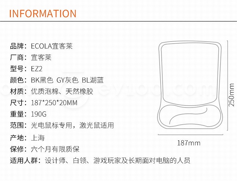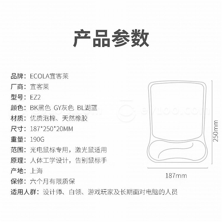 宜客莱 人体工学护腕鼠标垫 EZ2BK