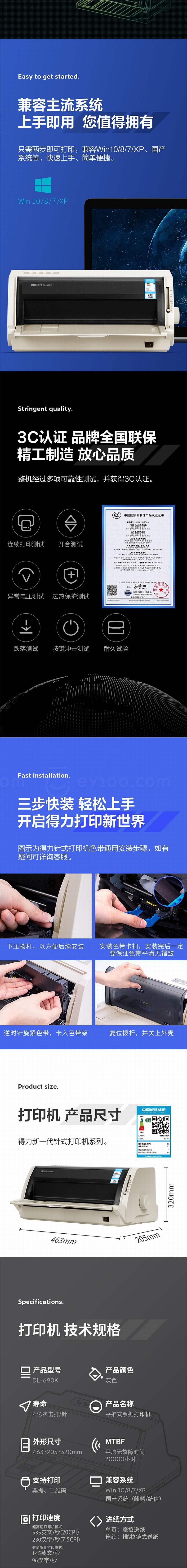 得力 针式打印机 (白灰) 110列 DL-690K