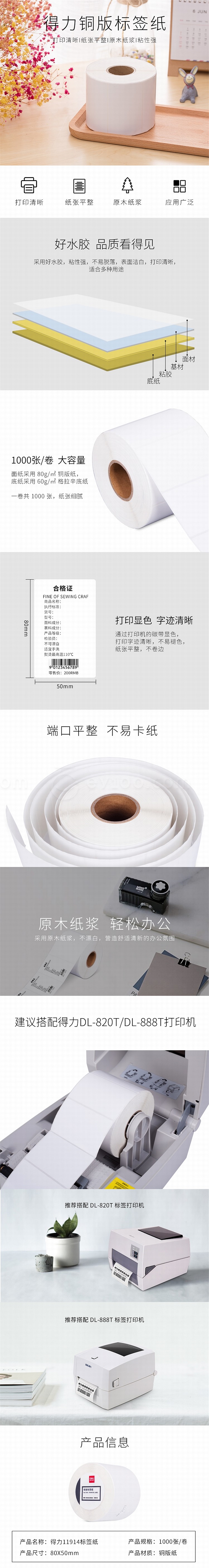 得力 铜版标签纸 (白) 80*50mm-1000枚/卷 11914
