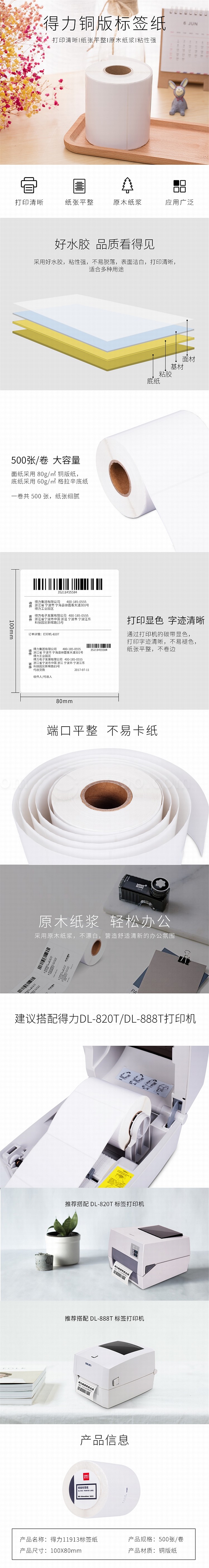 得力 铜版标签纸 (白) 100*80mm-500枚/卷 11913