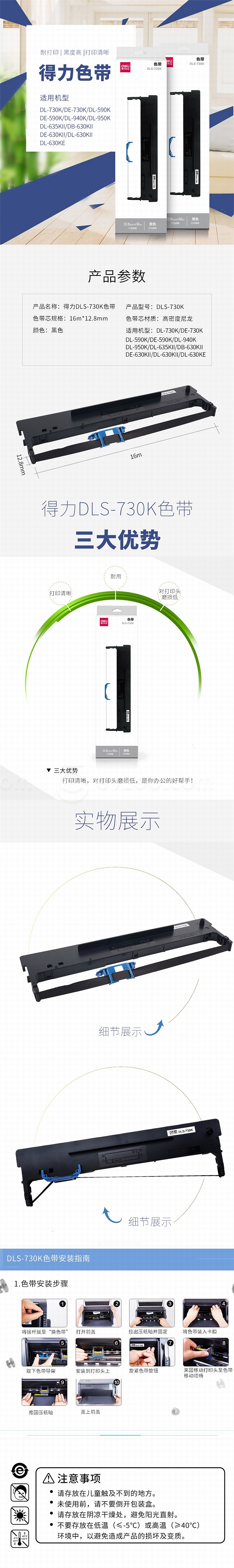 得力 针式打印机色带 (黑) DLS-730K