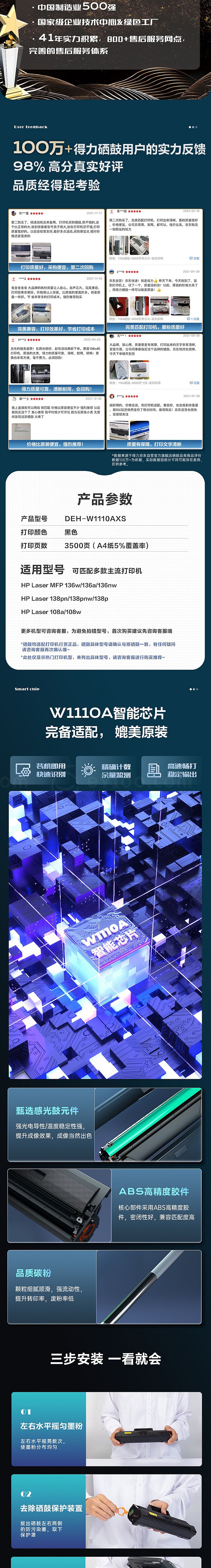 得力 激光打印机碳粉盒 (黑) 大容量 DEH-W1110AXS