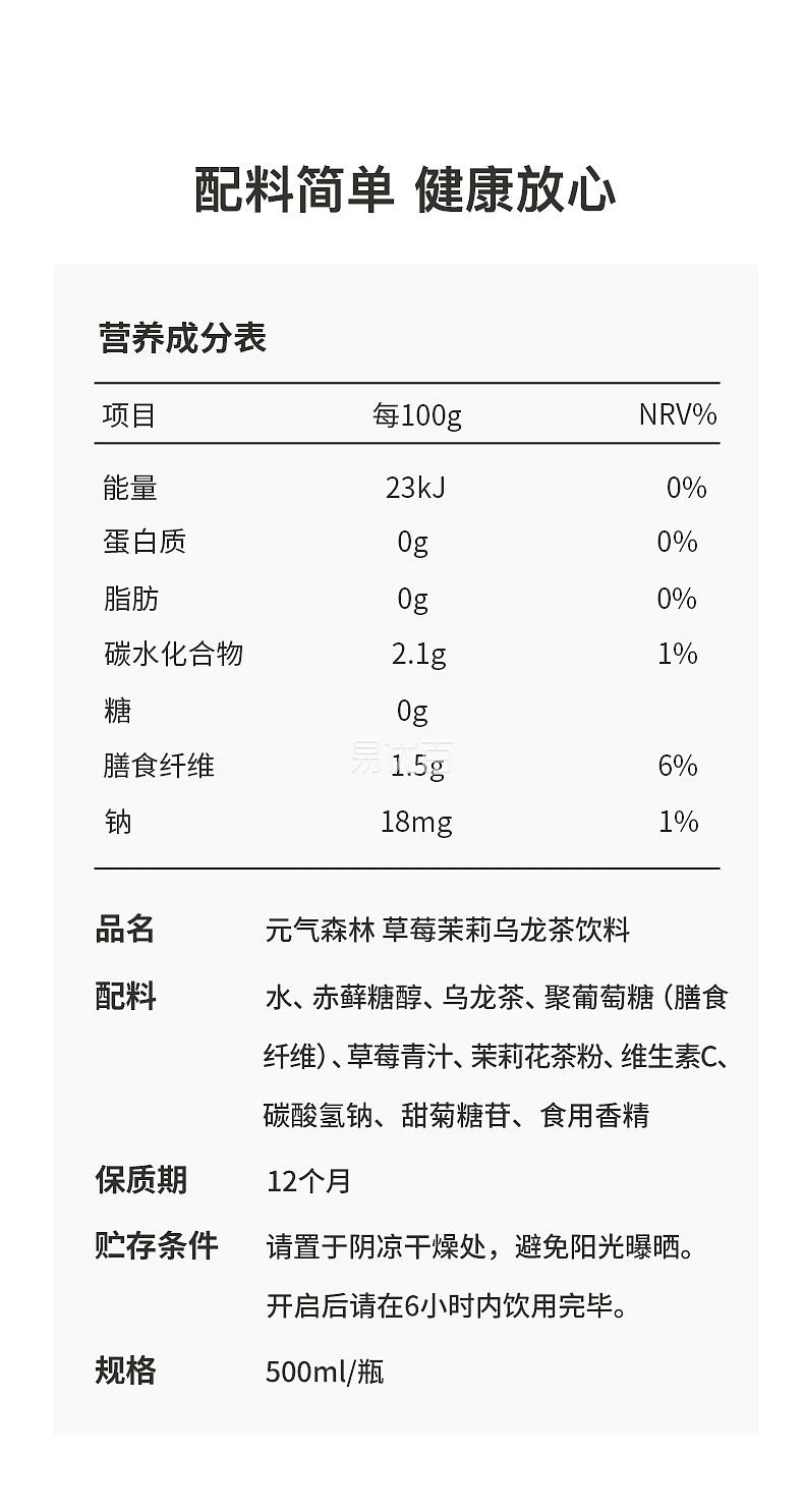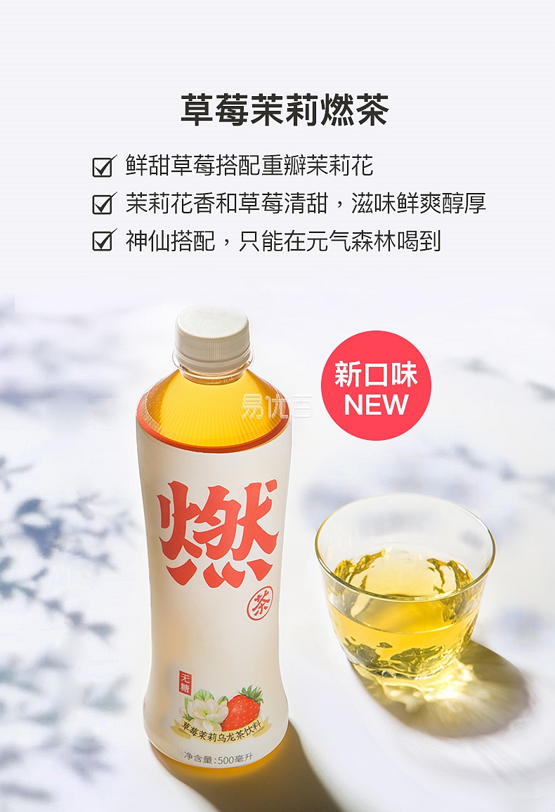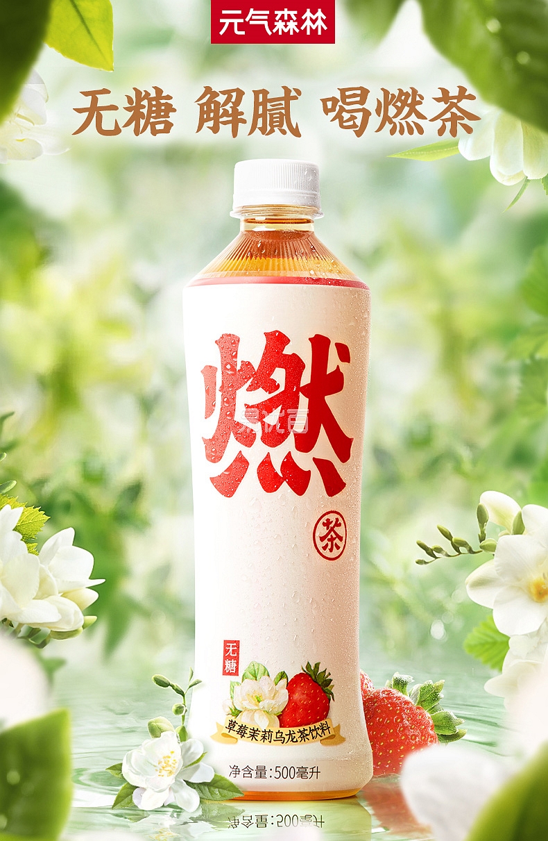 产品:元気森林 无糖乌龙燃茶饮料 草莓茉莉燃茶