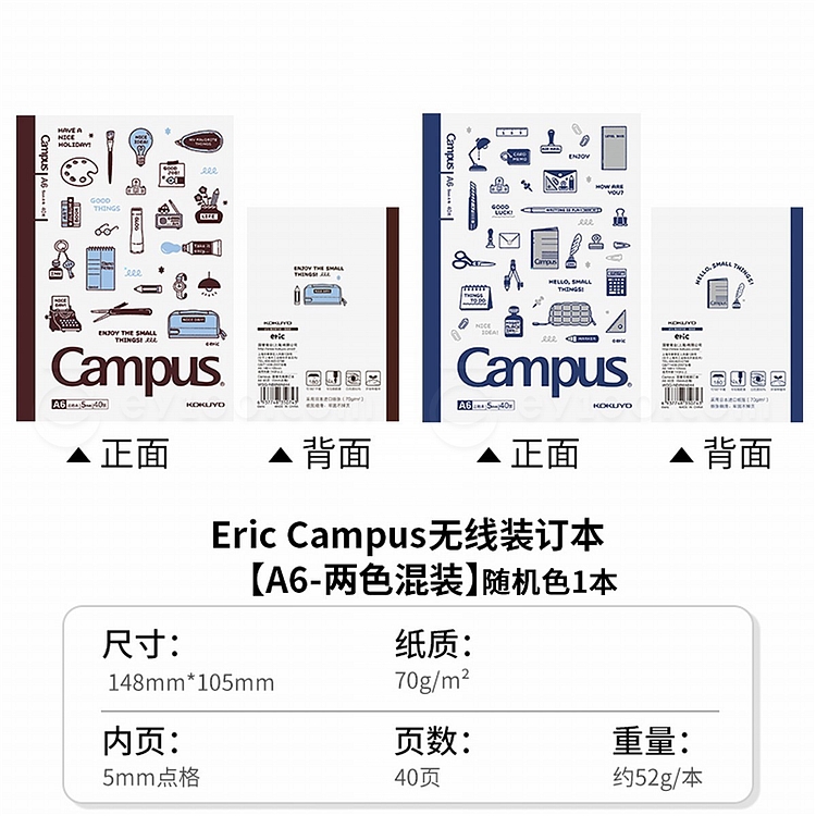 国誉 eric Campus无线装订本套装 (2色混装) A6/40页 5mm点格 4本/封 WSG-NB8MA644