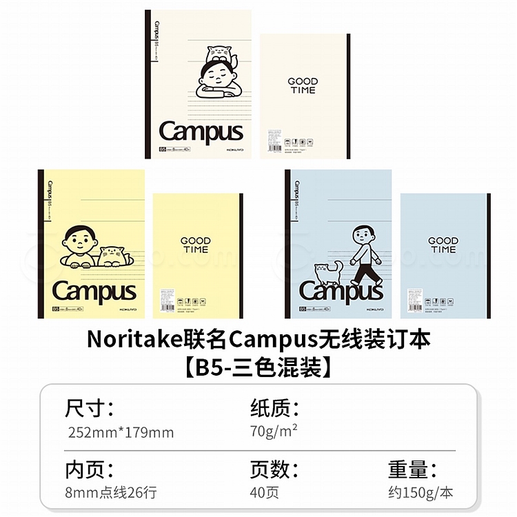 国誉 Noritake Campus无线装订本套装 (3色混装) B5/40页 8mm点线 3本/封 WSG-NB2XB5403