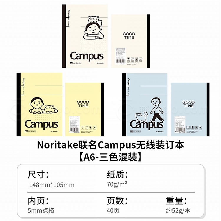 国誉 Noritake Campus无线装订本套装 (3色混装) A6/40页 5mm点格 3本/封 WSG-NB2XA6441