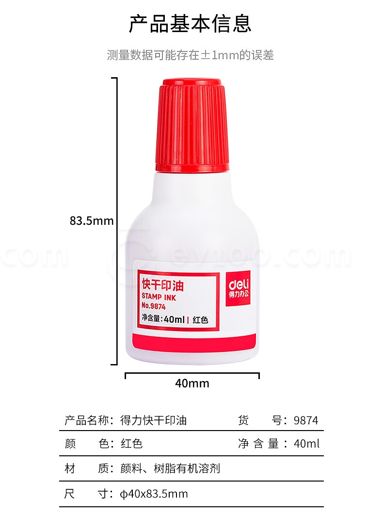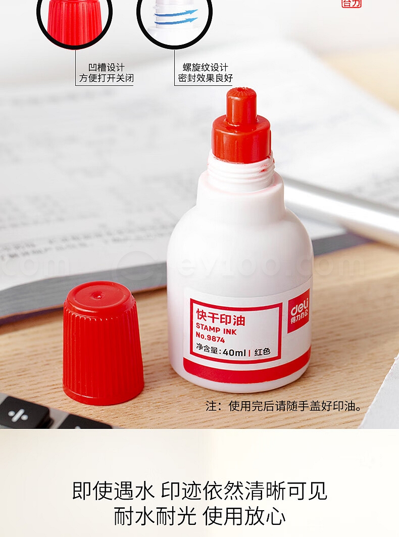 耐储存,耐挥发。盖印清晰,干燥快,耐水耐光。添加于快干印台使用。