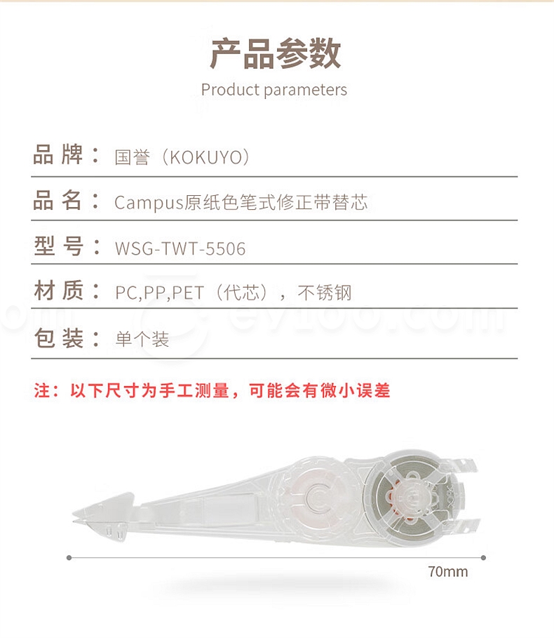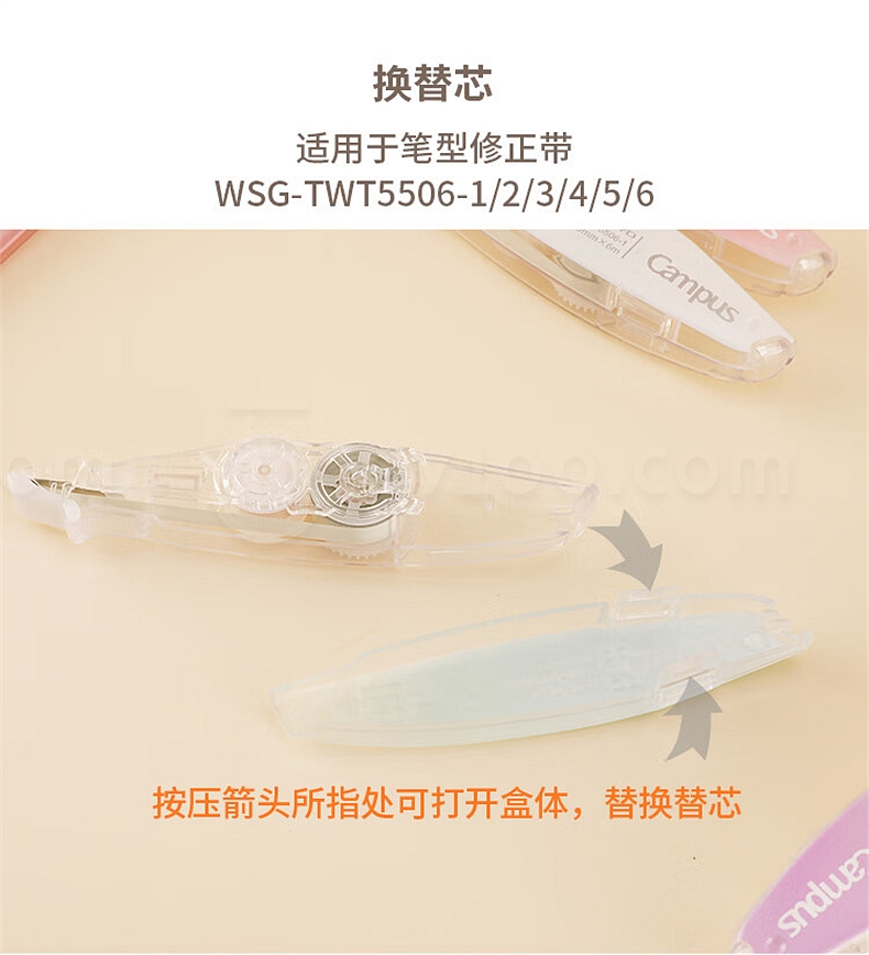 适用于笔型修行带,配套修正带本体型号:WSG-TWT5506-1/2/3/4/5/6