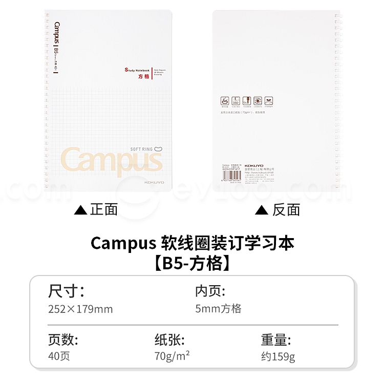 国誉 Campus软线圈学习本 B5/40页 方格 WCN-CSR1417