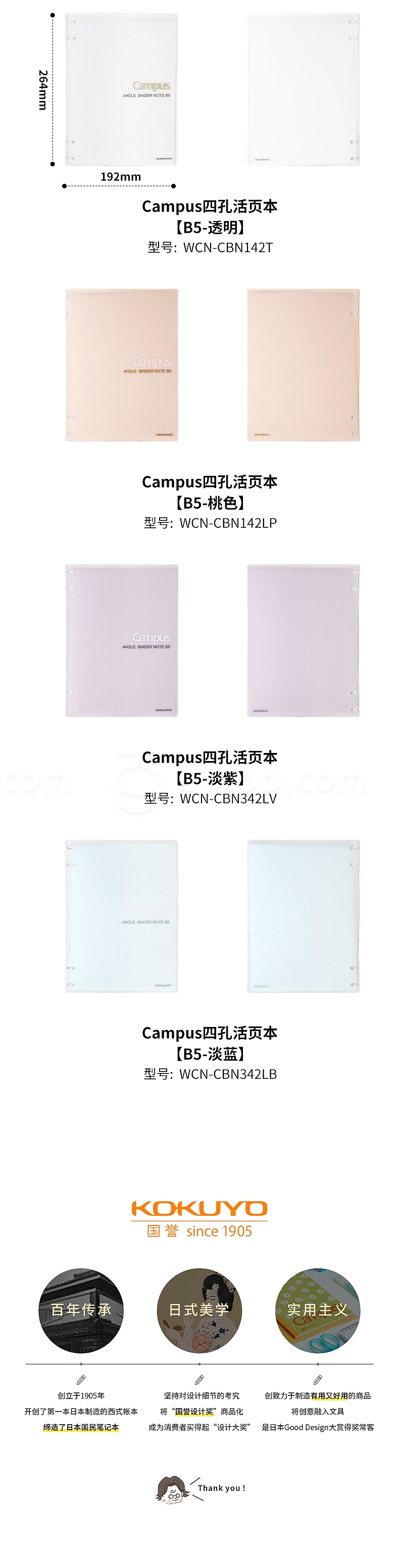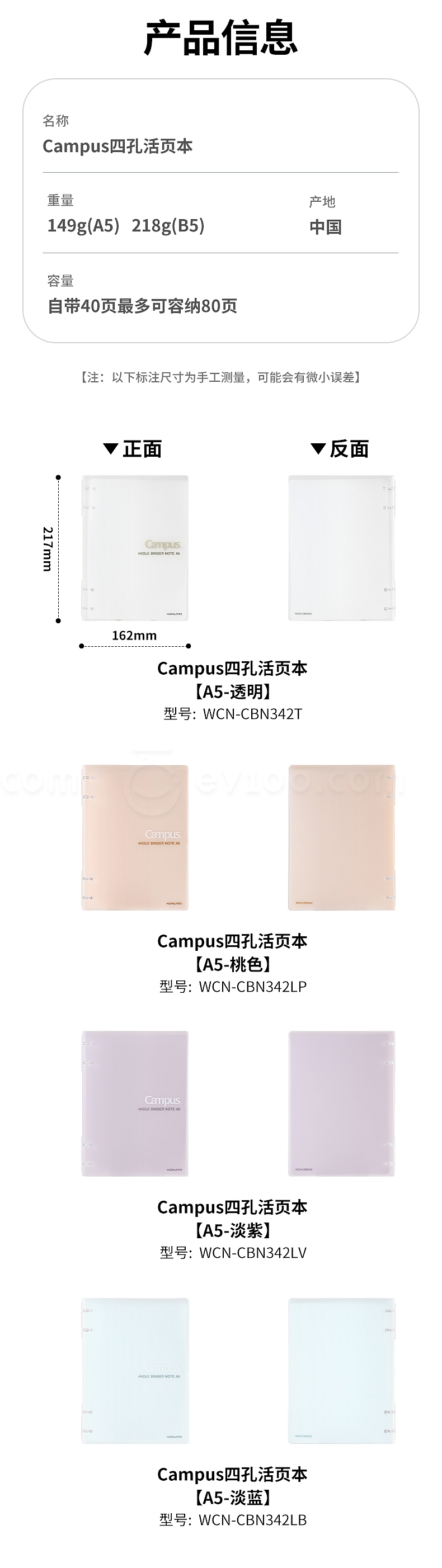国誉 Campus四孔活页本(80页式样) (桃色) A5/40页 WCN-CBN342LP