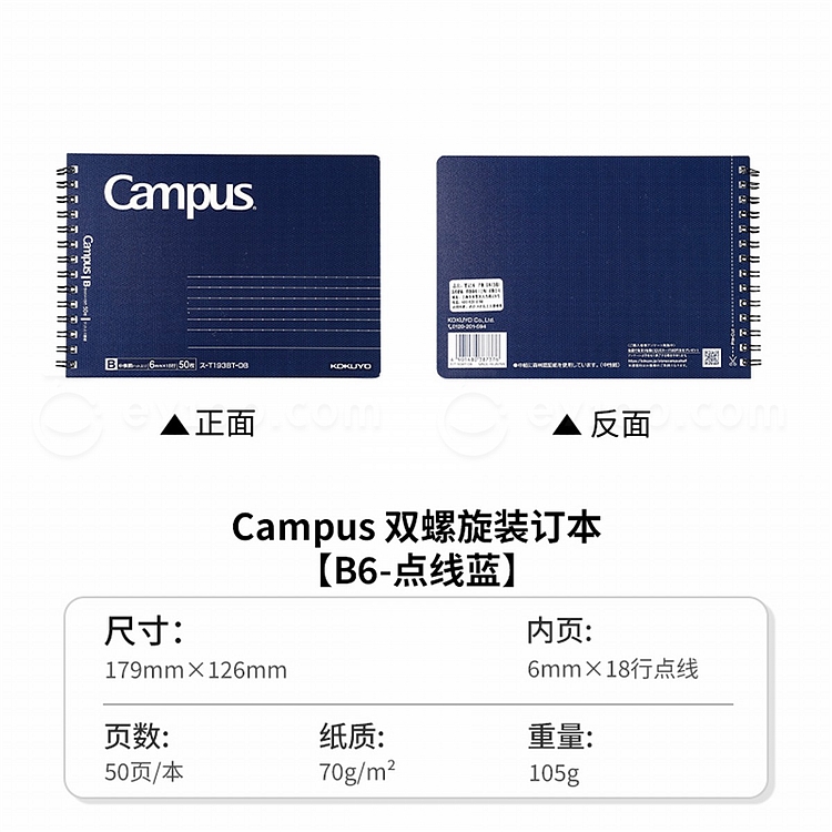 国誉 Campus双螺旋装订本 (蓝色) B6变形/50页 SU-T193BT-DB