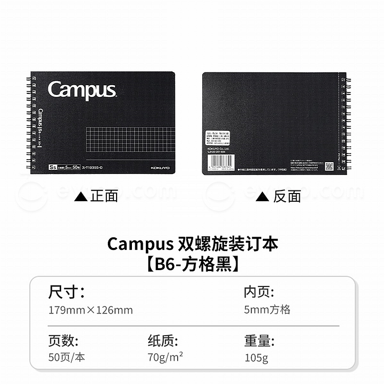 国誉 Campus双螺旋装订本 (黑色) B6变形/50页 SU-T193S5-D