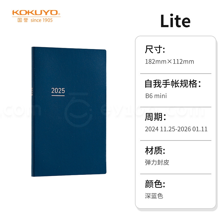 国誉 2025年迷你自我手帐Lite套装 (深蓝) B6细长款 NI-JLM1DB-25