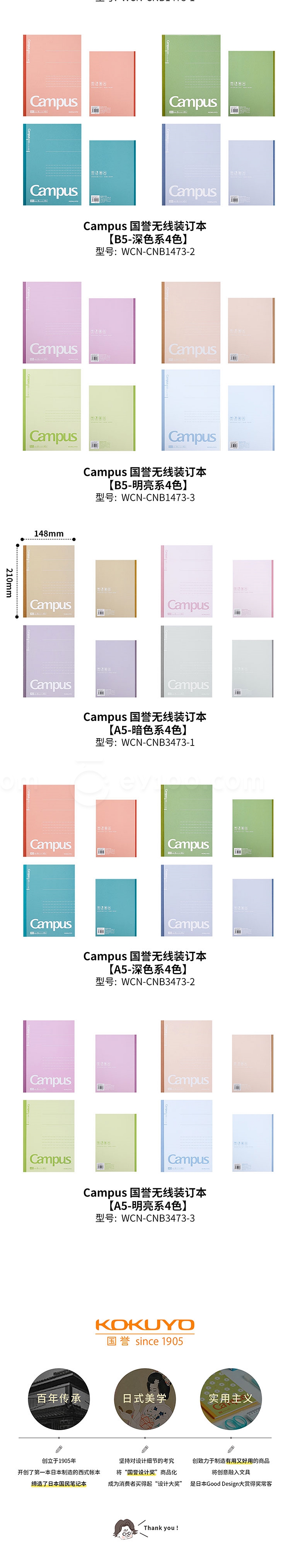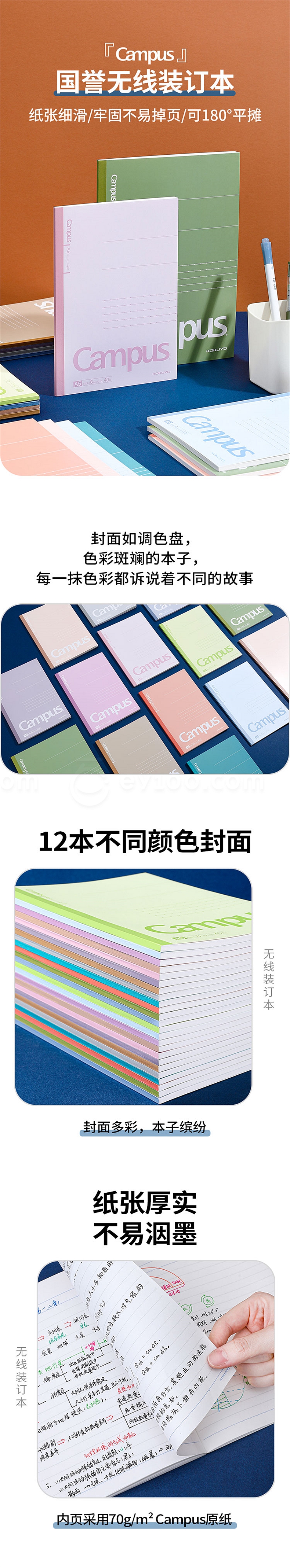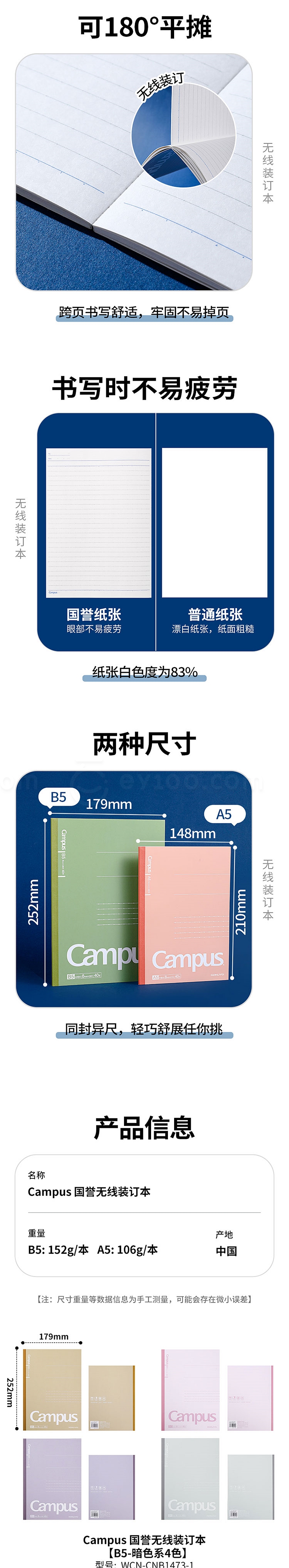 国誉 Campus彩色无线装订本 (4色混装) B5/40页 8mm点线 4本/封 WCN-CNB1473-2