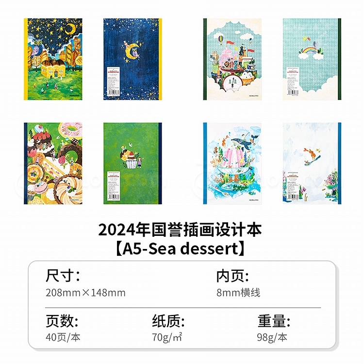 国誉 Illustrator无线装订本(Sea dessert) (4色混装) A5/40页 8mm横线 4本/封 WCN-DNA54-J151