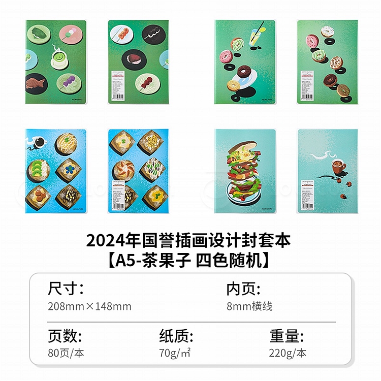国誉 Illustrator PVC封套本(茶果子) (混色) A5/80页 8mm横线 WCN-DNA58-JC18