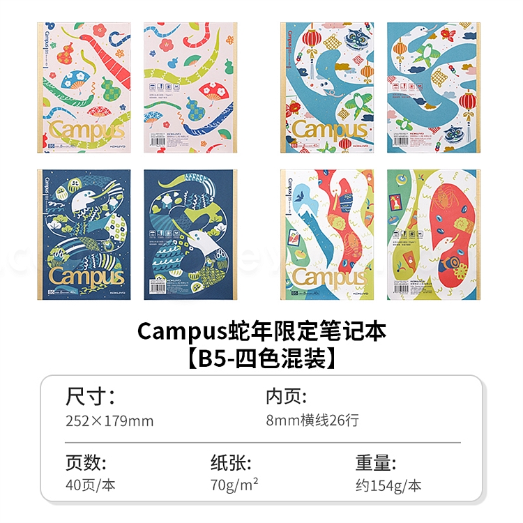 国誉 蛇年限定 Campus无线装订本套装 (4色混装) B5/40页 4本/包 WSG-NB4MB54E1