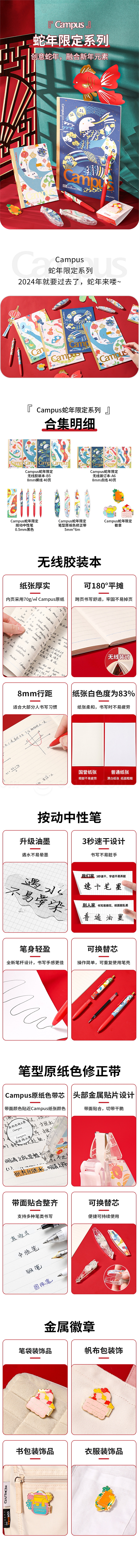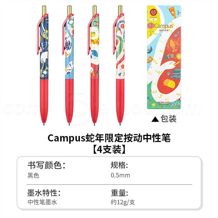 国誉 蛇年限定 Campus按动中性笔套装 (红色款) 0.5mm 黑芯 4支/套 WSG-PR4M3E2