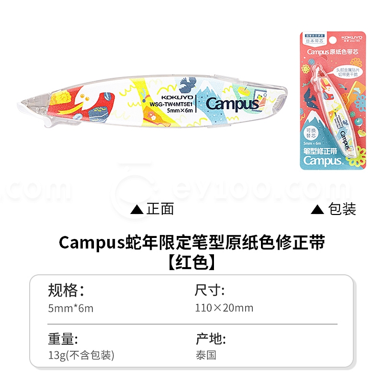 国誉 蛇年限定 Campus原纸色替芯式笔型修正带 (红) 5mm*6m内芯 WSG-TW4MT5E1