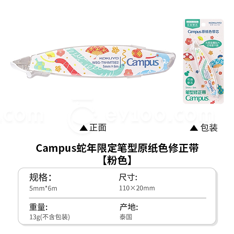 国誉 蛇年限定 Campus原纸色替芯式笔型修正带 (粉) 5mm*6m内芯 WSG-TW4MT5E2