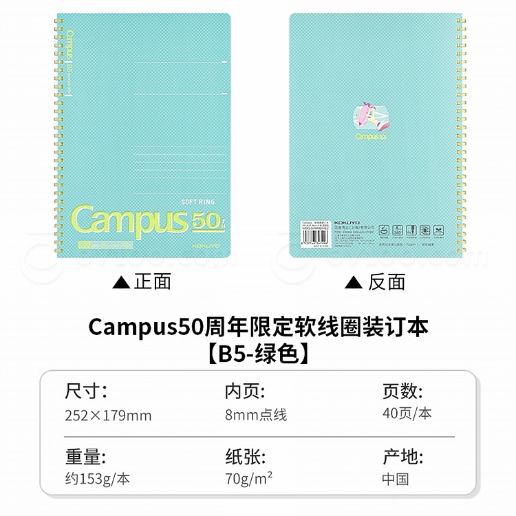 国誉 50周年限定软线圈装订本 (绿) B5/40页 8mm点线 WSG-SR9MB54E2