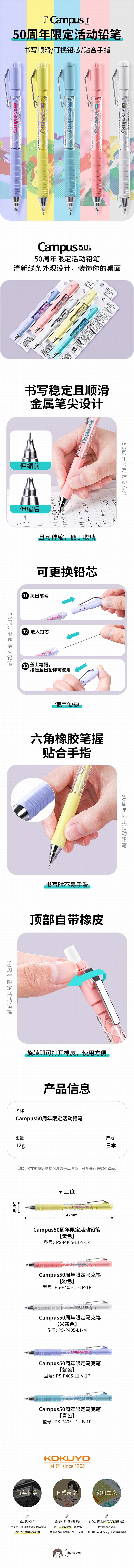 国誉 Campus 50周年限定活动铅笔 (黄色) 0.5mm铅芯 PS-P405-L1-Y-1P