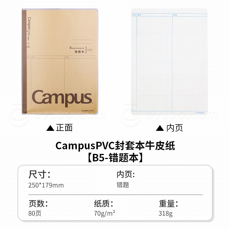 国誉 Campus牛皮纸PVC封套本(错题) (棕色) B5/80页 WCN-CNB18613