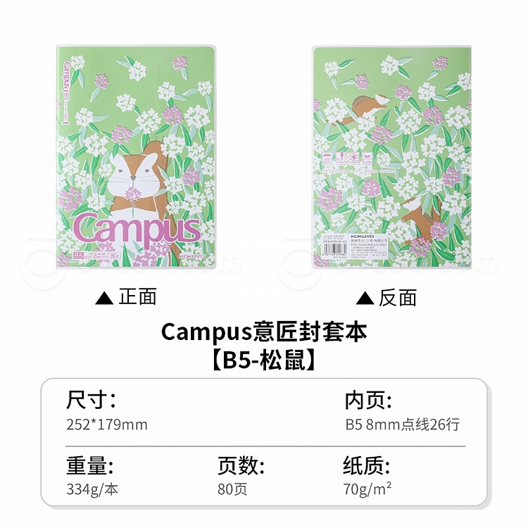 国誉 Campus PVC封套本(Ayaito花园小动物) (松鼠) B5/80页 8mm点线 WCN-CNB1861-C5